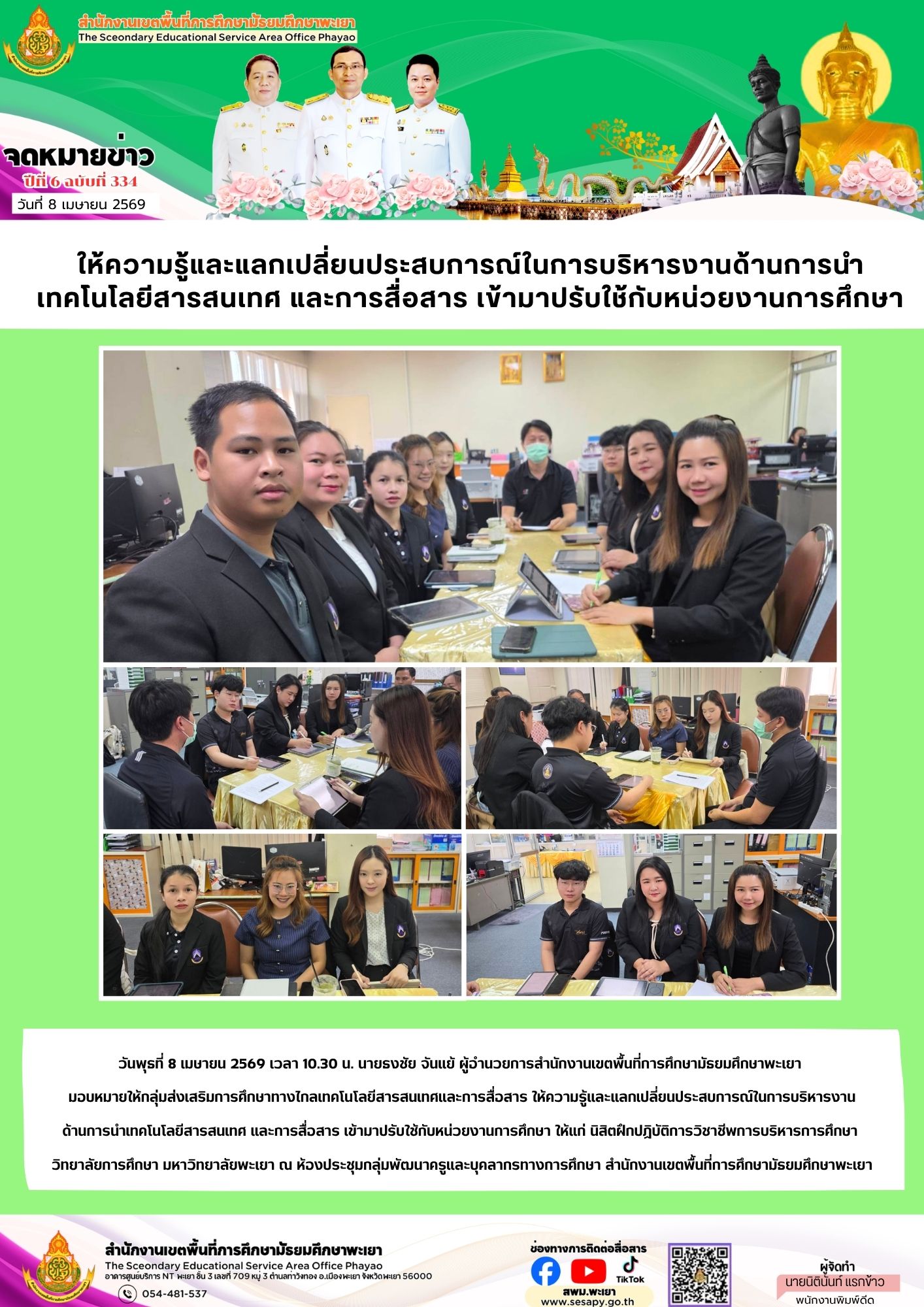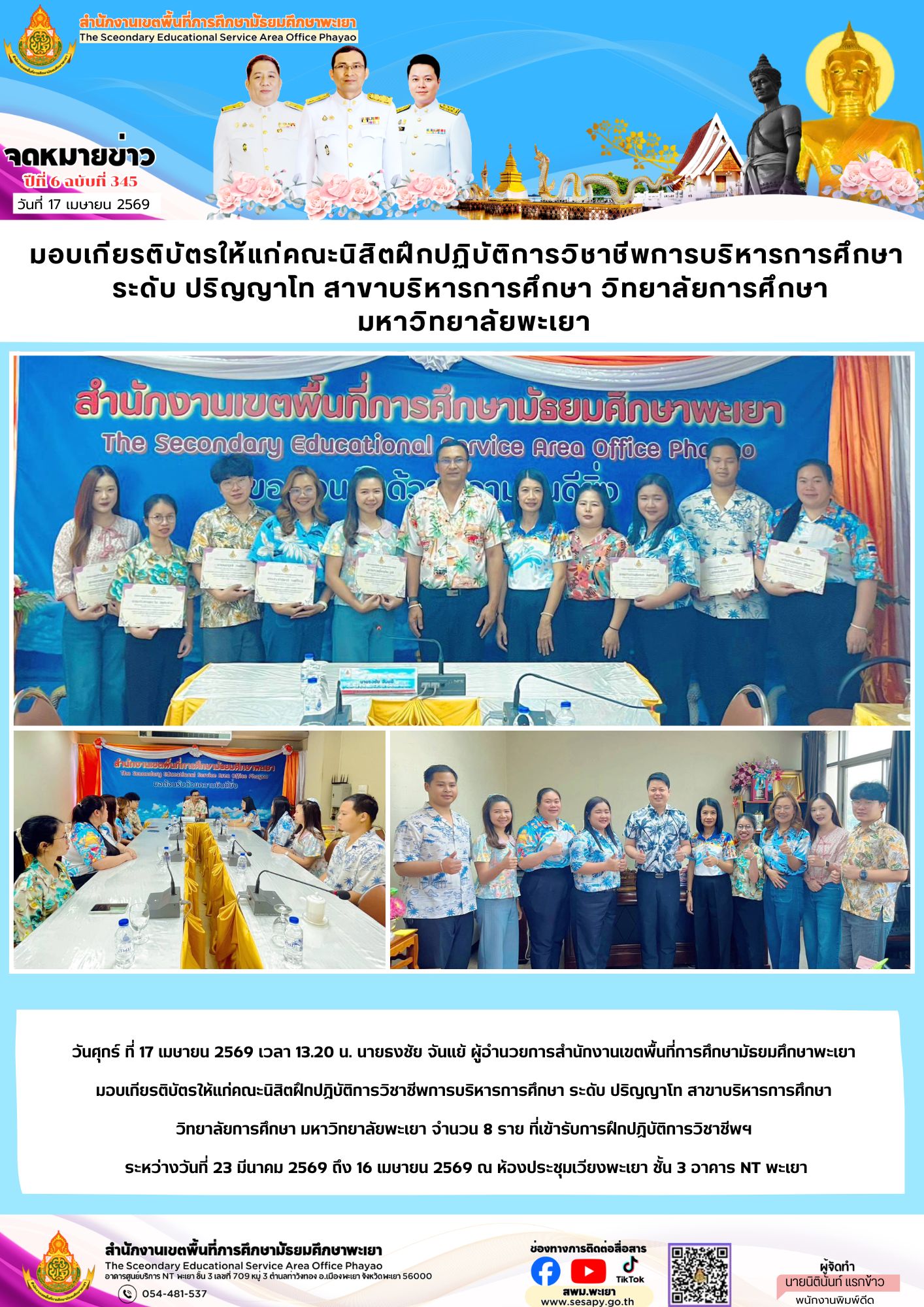 ข่าวประชาสัมพันธ์ สำนักงานเขตพื้นที่การศึกษามัธยมศึกษาพะเยา