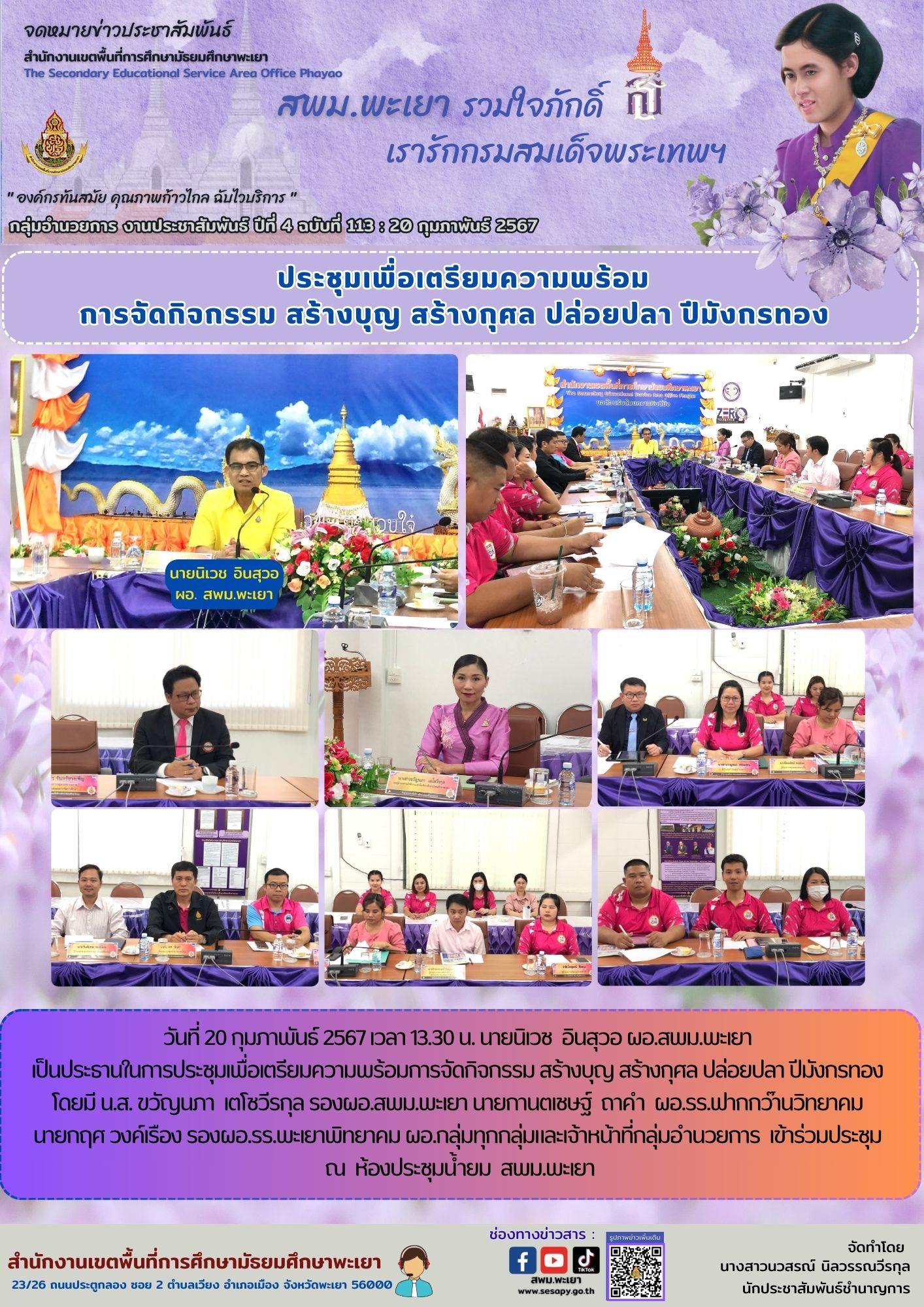 วันที่ 20 กุมภาพันธ์ 2567 เวลา 13.30 น. นายนิเวช อินสุวอ ผอ.สพม.พะเยา