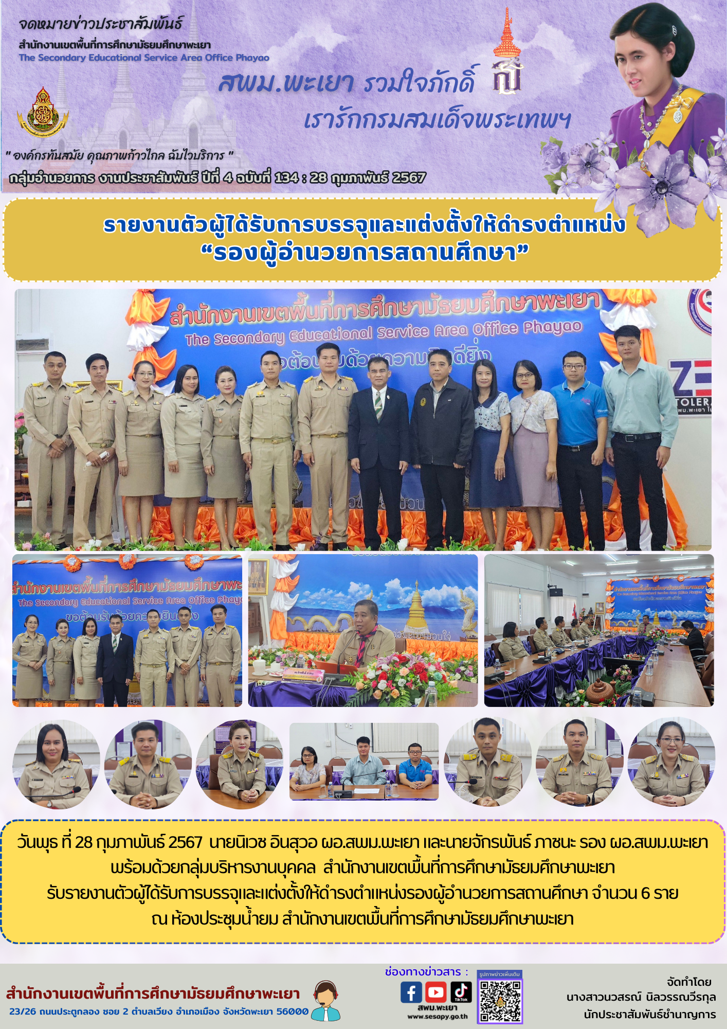 วันพุธ ที่ 28 กุมภาพันธ์ 2567 นายนิเวช อินสุวอ ผอ.สพม.พะเยา และนายจักรพันธ์ ภาชนะ รอง ผอ.สพม.พะเยา