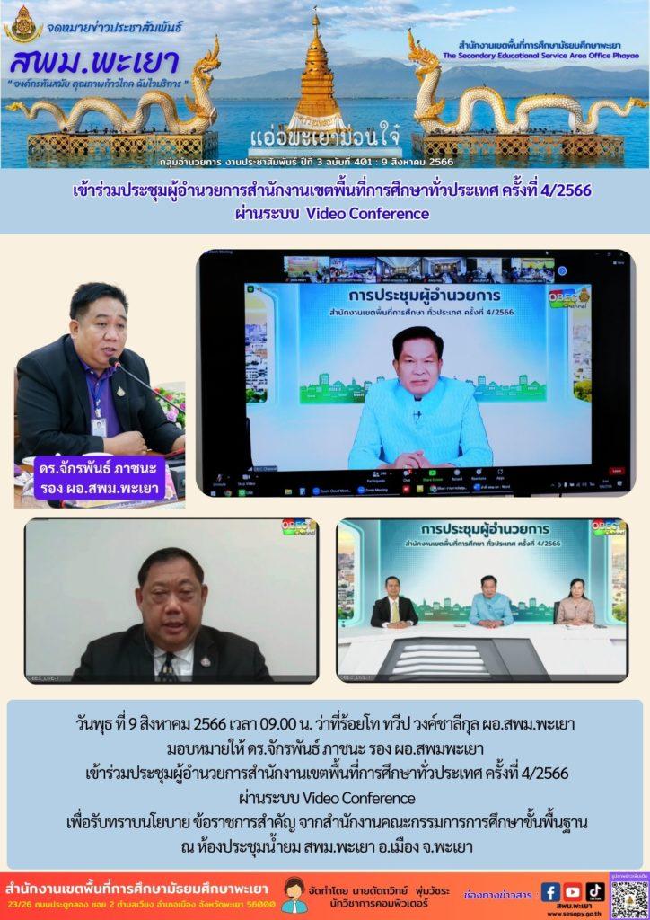 เข้าร่วมประชุมผู้อำนวยการสำนักงานเขตพื้นที่การศึกษาทั่วประเทศ ครั้งที่ 4/2566 ผ่านระบบ Video Conference