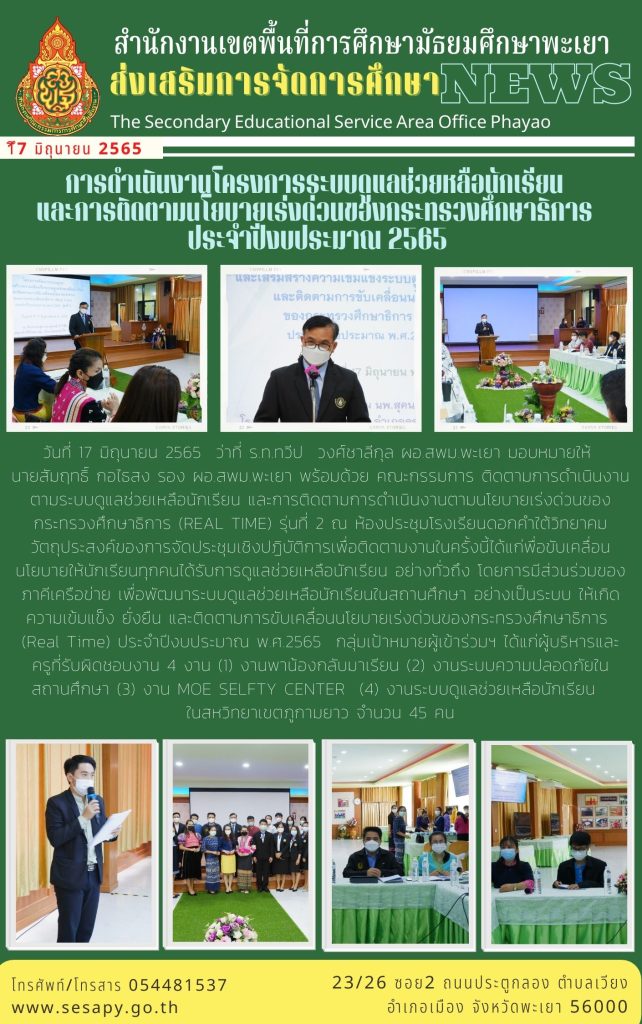 จดหมายข่าว สพม. การดำเนินการโครงการระบบดูแลช่วยเหลือนักเรียนและการติดตามนโยบายเร่งด่วนของกระทรวงศึกษาธิการ 20 มิถุนายน 202221 มิถุนายน 2022