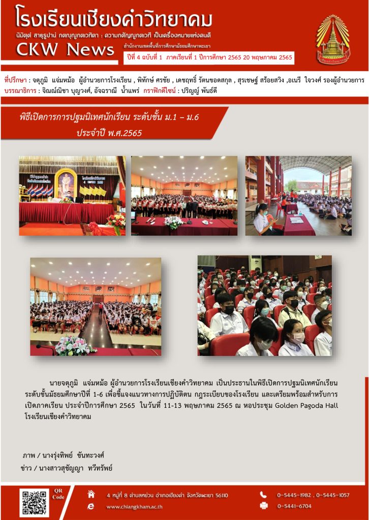 จดหมายข่าว สพม. สพม.พะเยา ร่วมรับชมรายการ พุธเช้า ข่าวสพฐ. ครั้งที่ 16/2565 และประชุมบุคลากร สพม.พะเยา 20 พฤษภาคม 202220 พฤษภาคม 2022