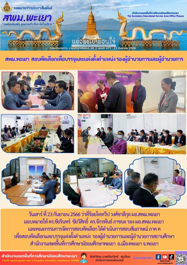 ประกาศจากกลุ่มบริหารงานบุคคล ประกาศ อ.ก.ค.ศ.เขตพื้นที่การศึกษามัธยมศึกษาพะเยา เรื่อง การขึ้นบัญชีผู้ได้รับการคัดเลือกบุคคลเพื่อบรรจุ แต่งตั้งให้ดำรงตำแหน่ง รองผู้อำนวยการและผู้อำนวยการสถานศึกษา สังกัดสำนักงานคณะกรรมการการศึกษาขั้นพื้้้นฐาน ปี พ.ศ.๒๕๖๖ 28 กันยายน 202328 กันยายน 2023