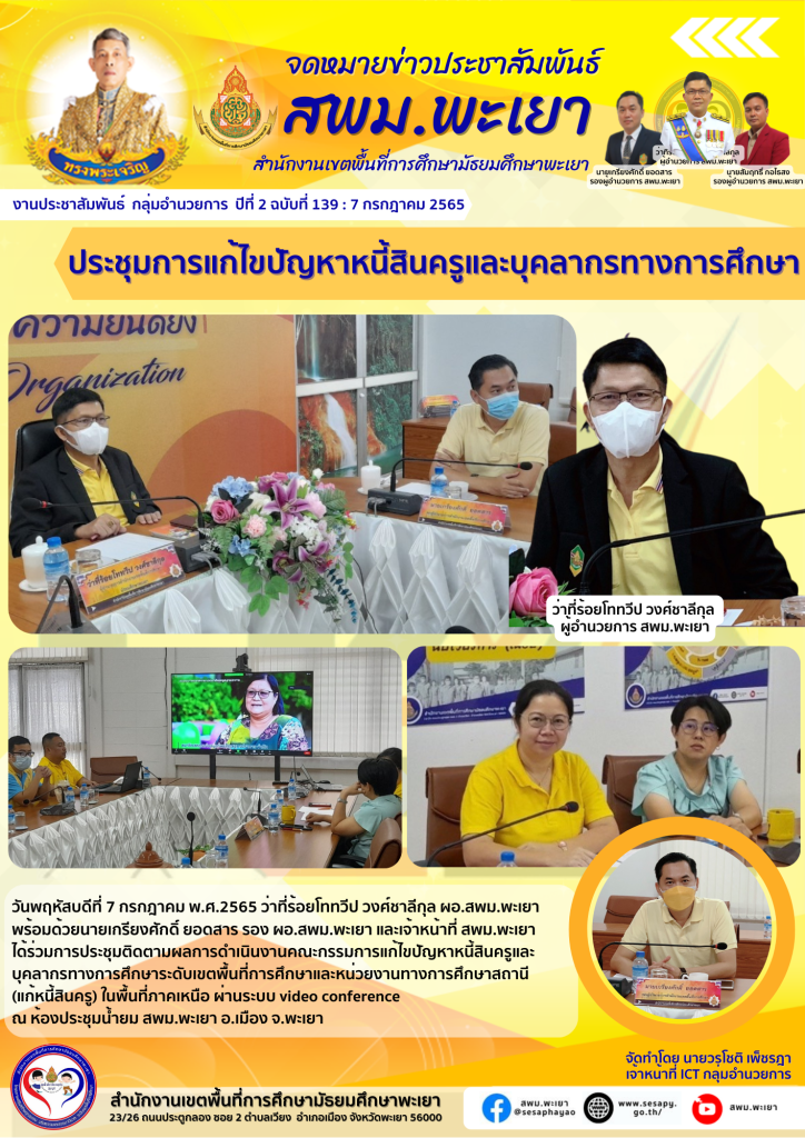 กิจกรรมผู้บริหาร สพม.พะเยา ถวายพระพรสมเด็จเจ้าฟ้า ฯ กรมพระศรีสวางควัฒน วรขัตติยราชนารี 4 กรกฎาคม 20224 กรกฎาคม 2022