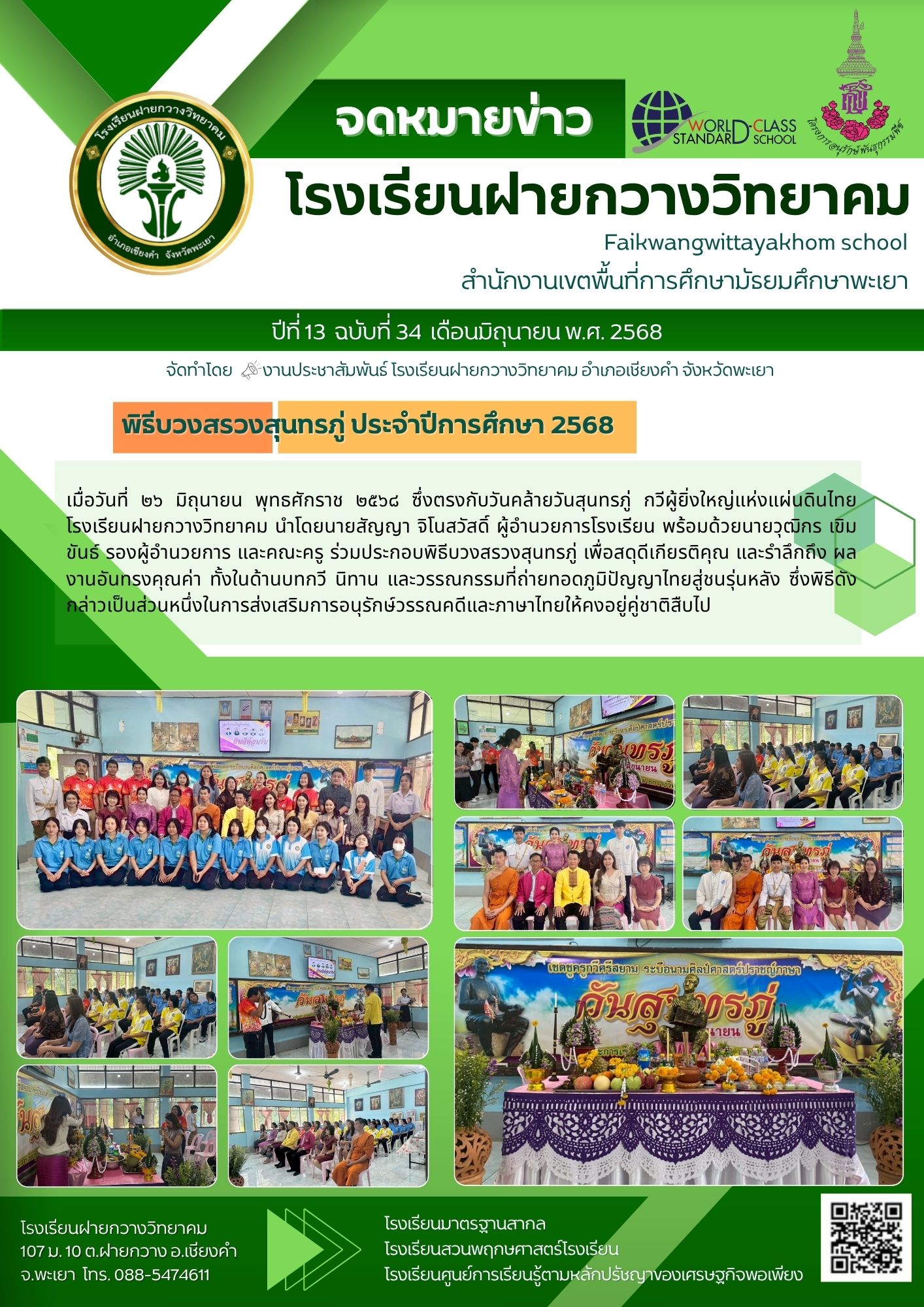 จดหมายข่าวโรงเรียน โรงเรียนฝายกวางวิทยาคม จัดพิธีบวงสรวงสุนทรภู่ ประจำปีการศึกษา 2568 27 มิถุนายน 20254 กรกฎาคม 2025