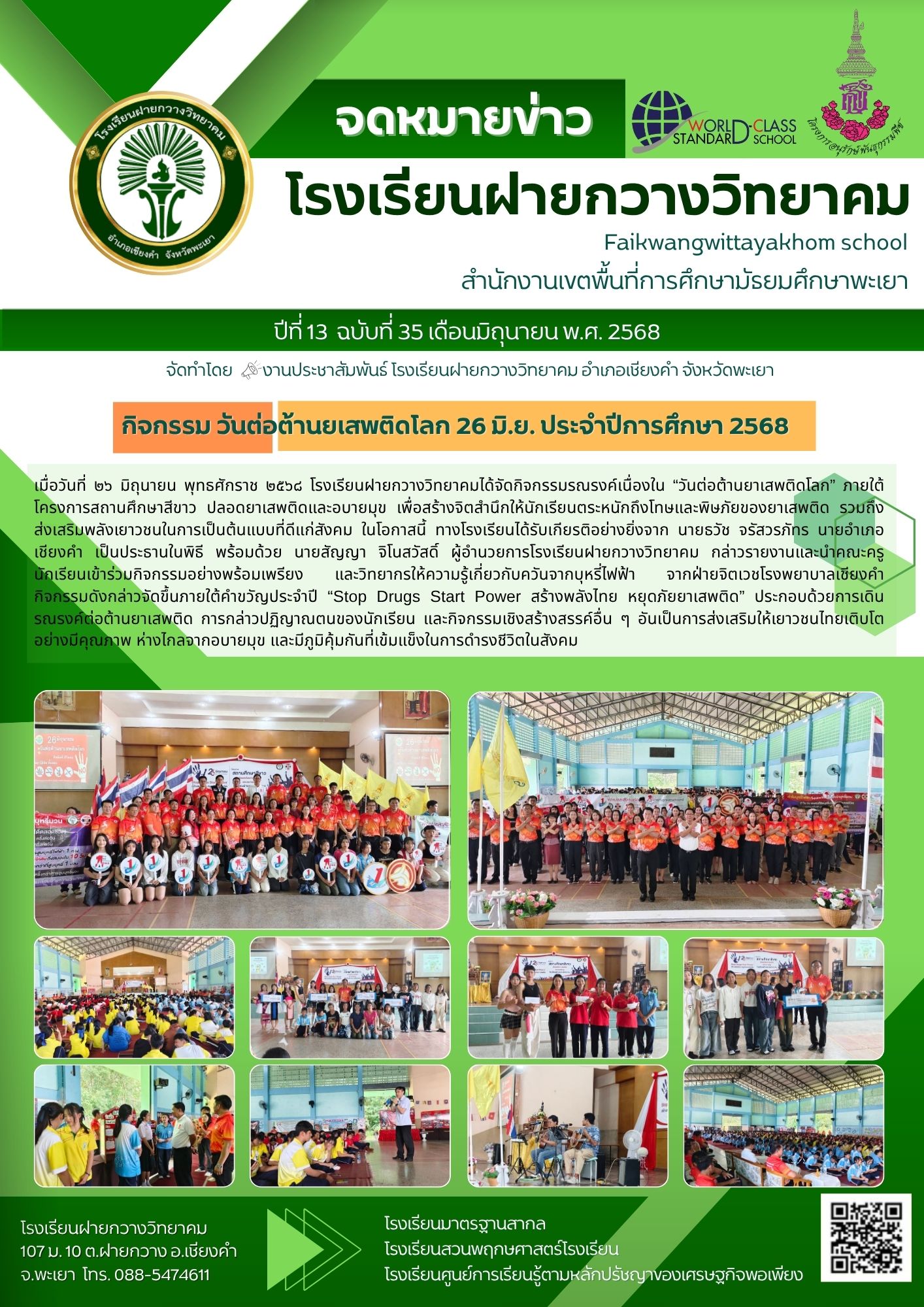 จดหมายข่าวโรงเรียน โรงเรียนฝายกวางวิทยาคม จัดกิจกรรมวันต่อต้านยาเสพติดโลก 27 มิถุนายน 20254 กรกฎาคม 2025