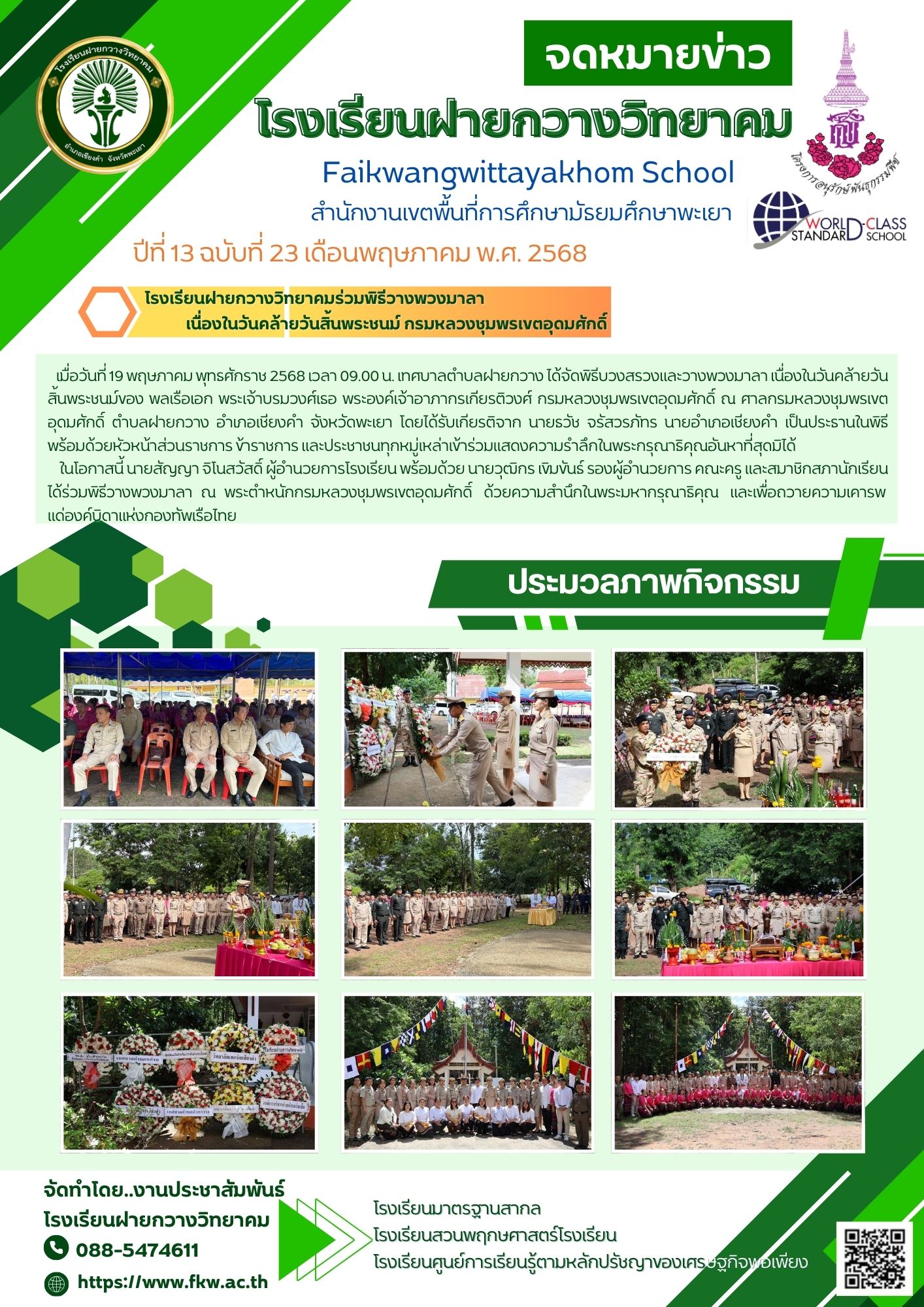 จดหมายข่าวโรงเรียน โรงเรียนฝายกวางวิทยาคมร่วมพิธีวางพวงมาลา เนื่องในวันคล้ายวันสิ้นพระชนม์ กรมหลวงชุมพรเขตอุดมศักดิ์ 19 พฤษภาคม 202524 พฤศจิกายน 2025