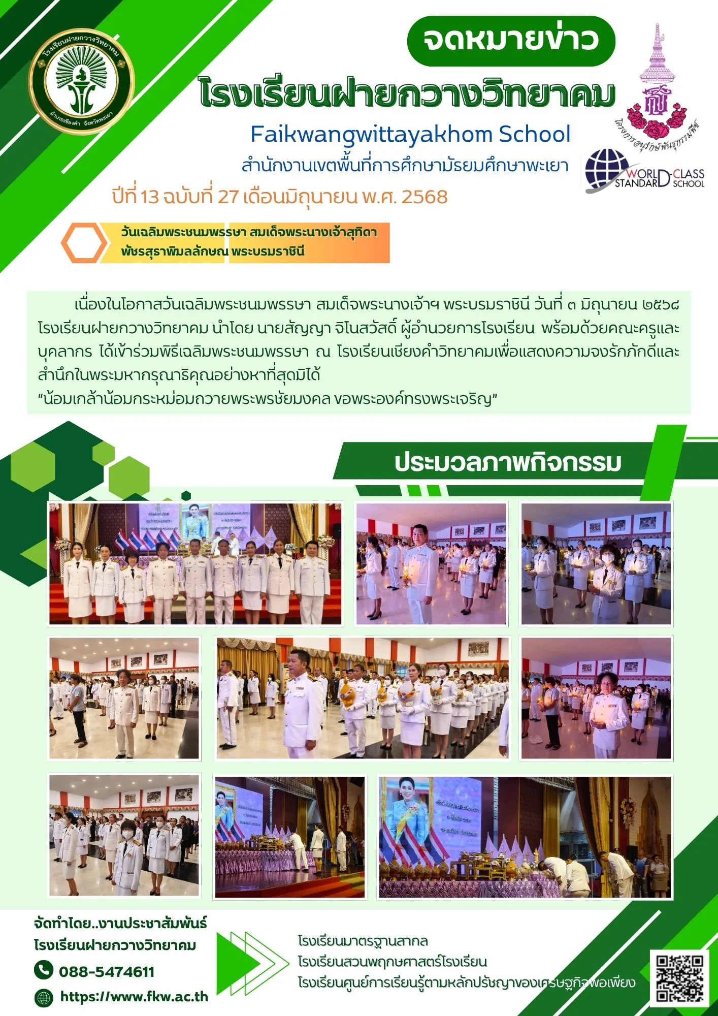 จดหมายข่าวโรงเรียน วันเฉลิมพระชนมพรรษา สมเด็จพระนางเจ้าสุทิดา พัชรสุธาพิมลลักษณ พระบรมราชินี 3 มิถุนายน 20254 มิถุนายน 2025