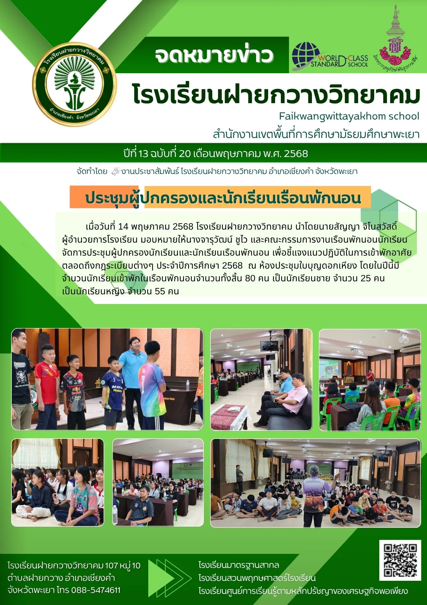 จดหมายข่าวโรงเรียน โรงเรียนฝายกวางวิทยาคม ได้จัดประชุมผู้ปกครองและนักเรียนเรือนพักนอน 14 พฤษภาคม 202524 พฤศจิกายน 2025