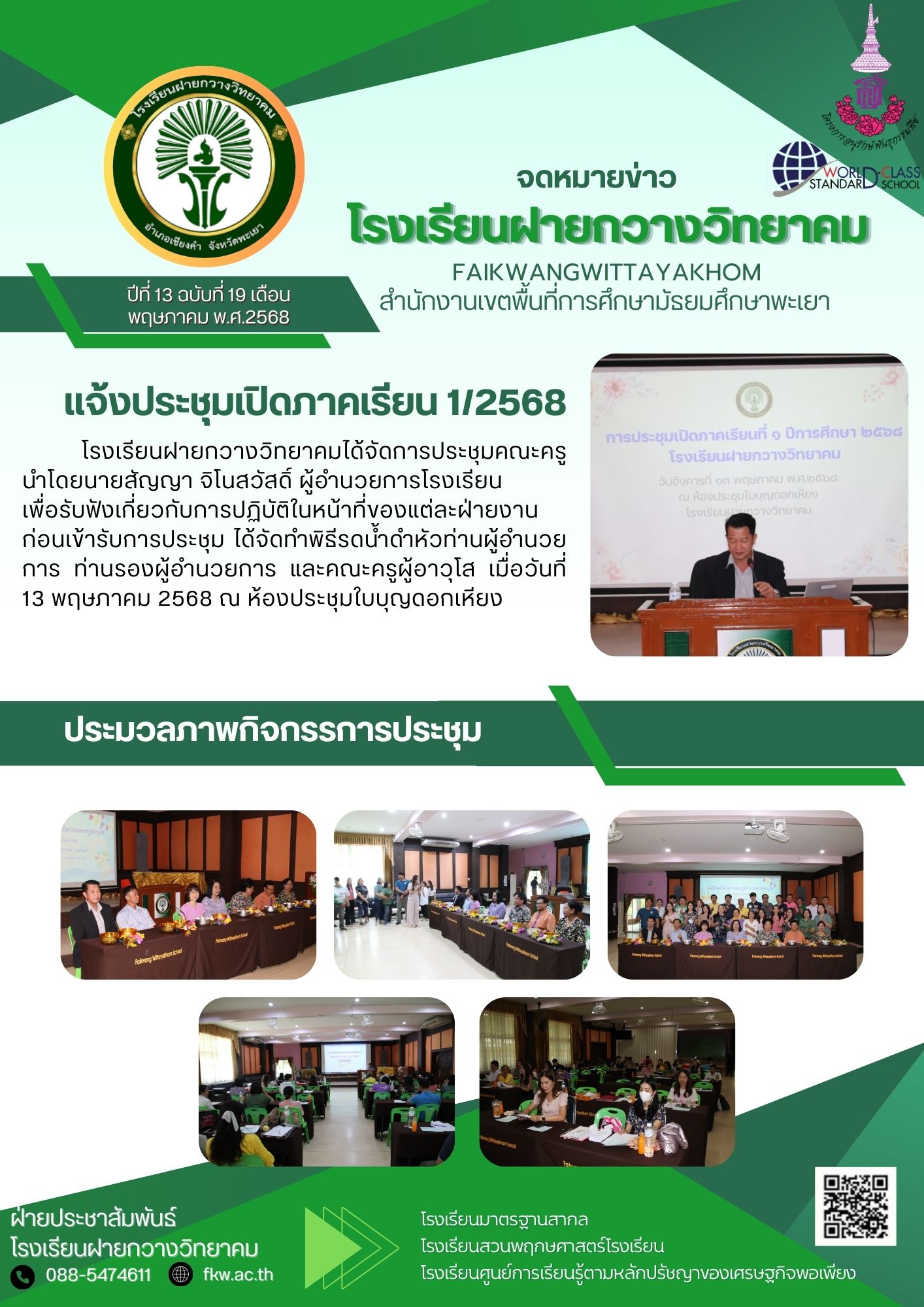 จดหมายข่าวโรงเรียน โรงเรียนฝายกวางวิทยาคมจัดประชุมการเปิดภาคเรียน ประจำปีการศึกษา 2568 13 พฤษภาคม 202524 พฤศจิกายน 2025