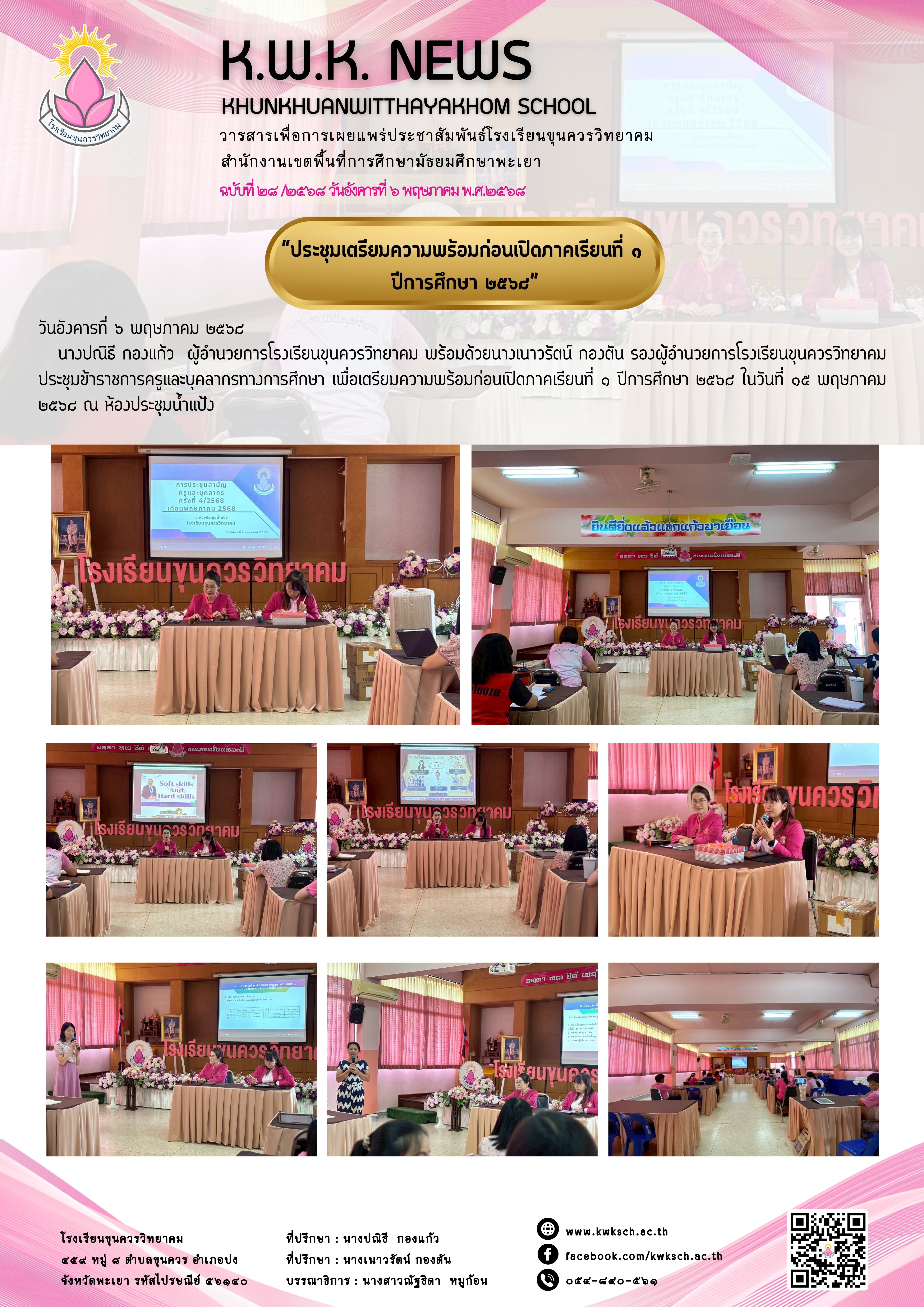 จดหมายข่าวโรงเรียน “ประชุมเตรียมความพร้อมก่อนเปิดภาคเรียนที่ ๑ ปีการศึกษา ๒๕๖๘” 7 พฤษภาคม 202527 มิถุนายน 2025