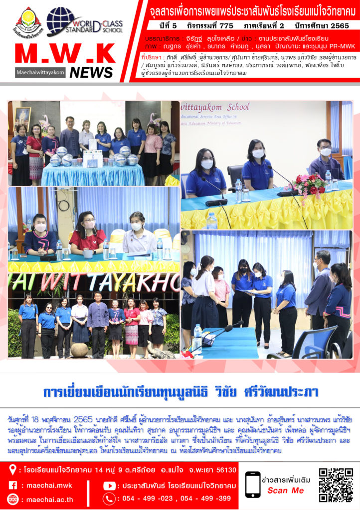 จดหมายข่าวโรงเรียน รร.แม่ใจวิทยาคม การเยี่ยมเยือนนักเรียนทุนมูลนิธิ วิชัย ศรีวัฒนประภา 19 พฤศจิกายน 202219 พฤศจิกายน 2022