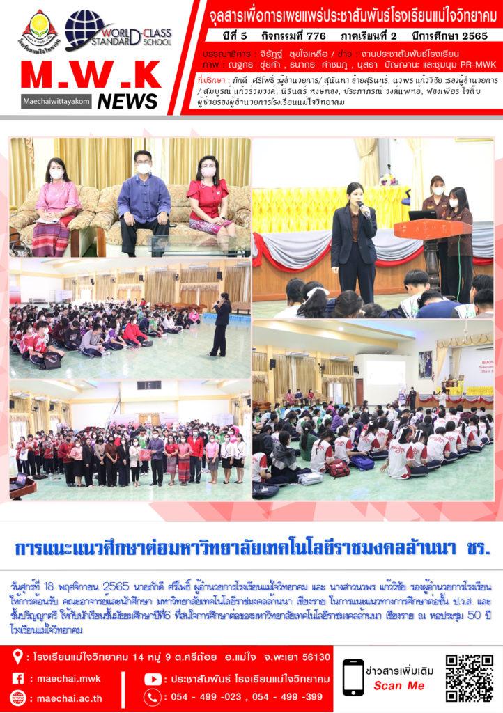 จดหมายข่าวโรงเรียน รร. แม่ใจวิทยาคม การแนะแนวศึกษาต่อมหาวิทยาลัยเทคโนโลยีราชมงคลล้านนา เชียงราย 19 พฤศจิกายน 202219 พฤศจิกายน 2022