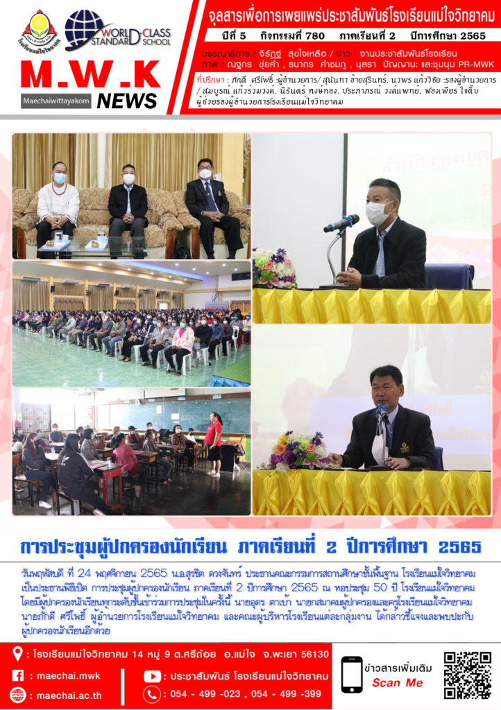 จดหมายข่าวโรงเรียน การประชุมผู้ปกครองนักเรียน ภาคเรียนที่ 2 ปีการศึกษา 2565 โรงเรียนแม่ใจวิทยาคม 25 พฤศจิกายน 202225 พฤศจิกายน 2022