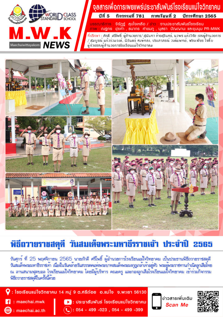 จดหมายข่าวโรงเรียน โรงเรียนแม่ใจวิทยาคม ได้จัดพิธีถวายราชสดุดี วันสมเด็จพระมหาธีรราชเจ้า 25 พฤศจิกายน 202225 พฤศจิกายน 2022