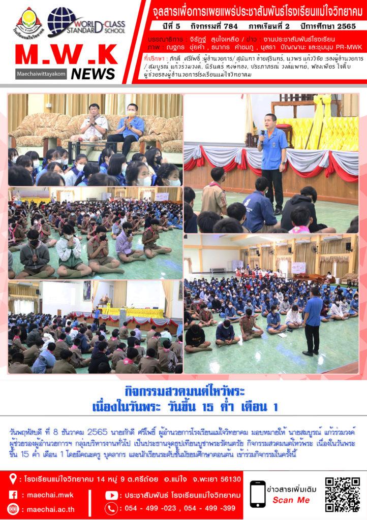 จดหมายข่าวโรงเรียน โรงเรียนแม่ใจวิทยาคม กิจกรรมสวดมนต์ไหว้พระ เนื่องในวันพระ ขึ้น 15 ค่ำ เดือน 1 9 ธันวาคม 20229 ธันวาคม 2022