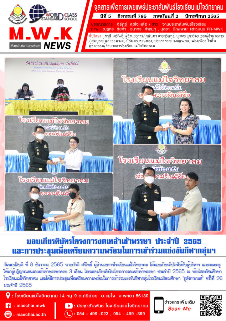 จดหมายข่าวโรงเรียน โรงเรียนแม่ใจวิทยาคม มอบใบเกียรติบัตรโครงการงดเหล้าเข้าพรรษา ประจำปี 2565 9 ธันวาคม 20229 ธันวาคม 2022