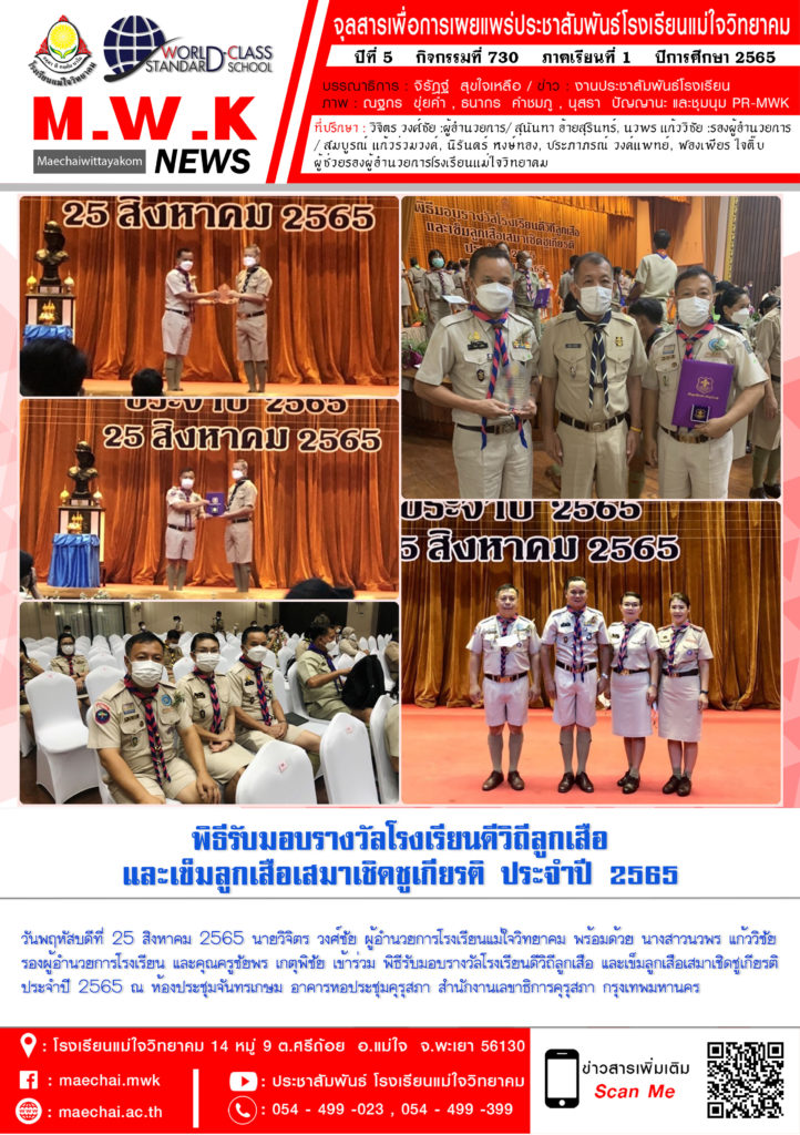 จดหมายข่าวโรงเรียน โรงเรียนแม่ใจวิทยาคม พิธีรับมอบรางวัลโรงเรียนดีวิถีลูกเสือ และเข็มลูกเสือเสมาเชิดชูเกียรติ ประจำปี 2565 25 สิงหาคม 202225 สิงหาคม 2022