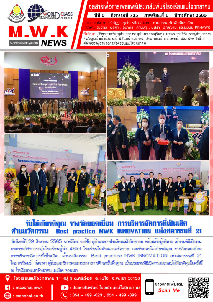 จดหมายข่าวโรงเรียน โรงเรียนแม่ใจวิทยาคม รับโล่เกียรติคุณ รางวัลยอดเยี่ยม การบริหารจัดการที่เป็นเลิศ ด้านนวัตกรรม Best practice MWK INNOVATION แห่งศตวรรษที่ 21 31 สิงหาคม 202231 สิงหาคม 2022