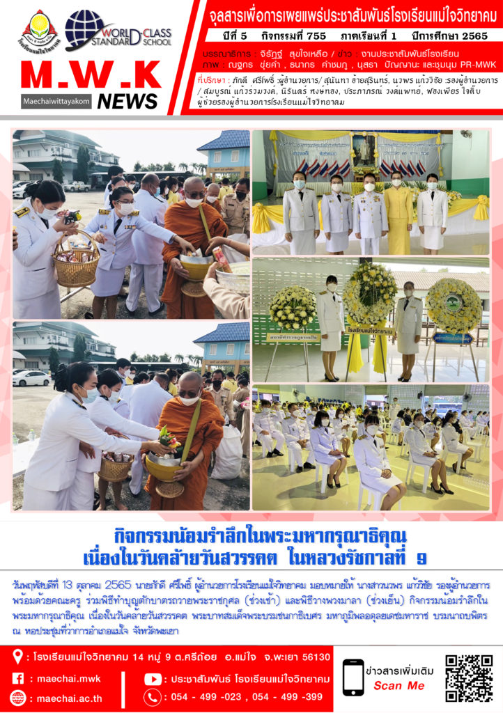 จดหมายข่าวโรงเรียน โรงเรียนแม่ใจวิทยาคม ร่วมพิธีถวายพวงมาลาเนื่องในวันคล้ายวันสวรรคตพระบาทสมเด็จพระจุลจอมเกล้าเจ้าอยู่หัว รัชกาลที่ 5 25 ตุลาคม 202225 ตุลาคม 2022