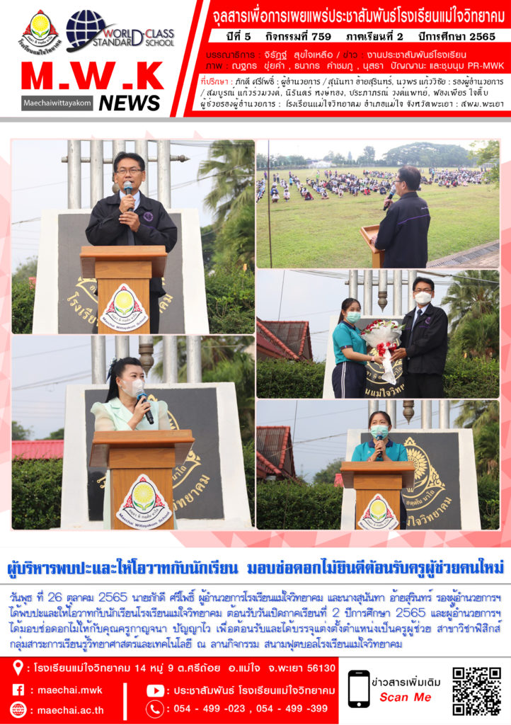 จดหมายข่าวโรงเรียน โรงเรียนแมใจวิทยาคม ต้อนรับวันเปิดภาคเรียนที่ 2 ปีการศึกษา 2565 27 ตุลาคม 202227 ตุลาคม 2022