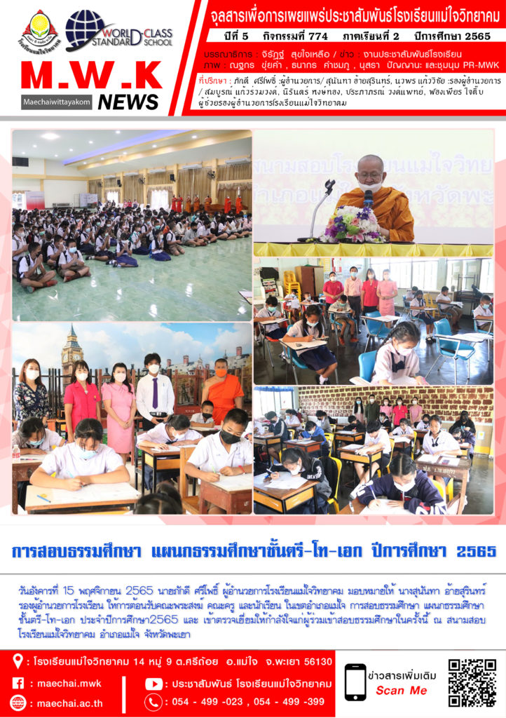 จดหมายข่าวโรงเรียน การสอบธรรมศึกษา แผนกธรรมศึกษาชั้นตรี-โท-เอก ประจำปีการศึกษา2565 16 พฤศจิกายน 202216 พฤศจิกายน 2022