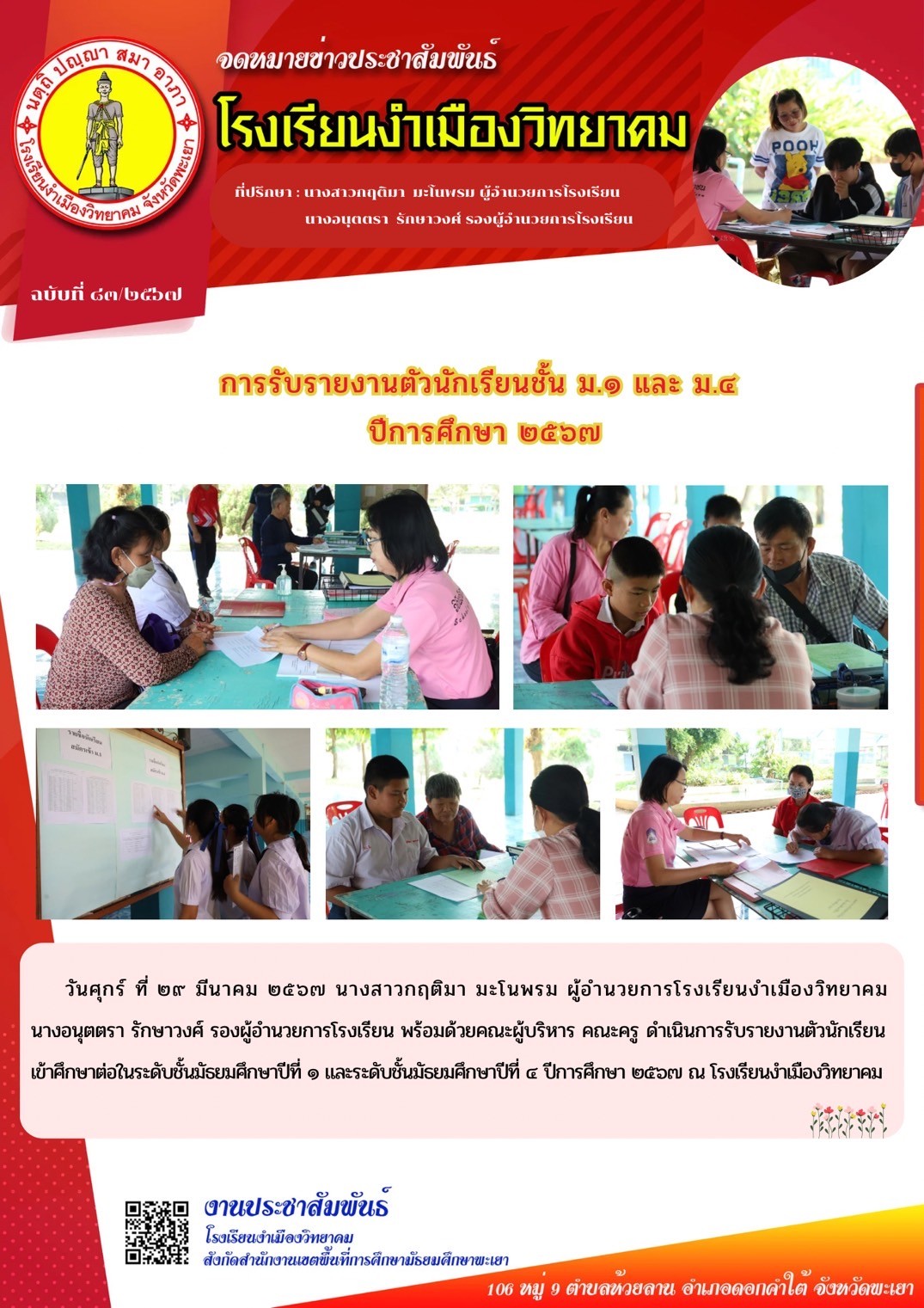 จดหมายข่าวโรงเรียน รองผู้อำนวยการโรงเรียนพบปะนักเรียนหน้าเสาธงและสักการะสิ่งศักดิ์สิทธิ์ของโรงเรียน 7 มีนาคม 20247 มีนาคม 2024