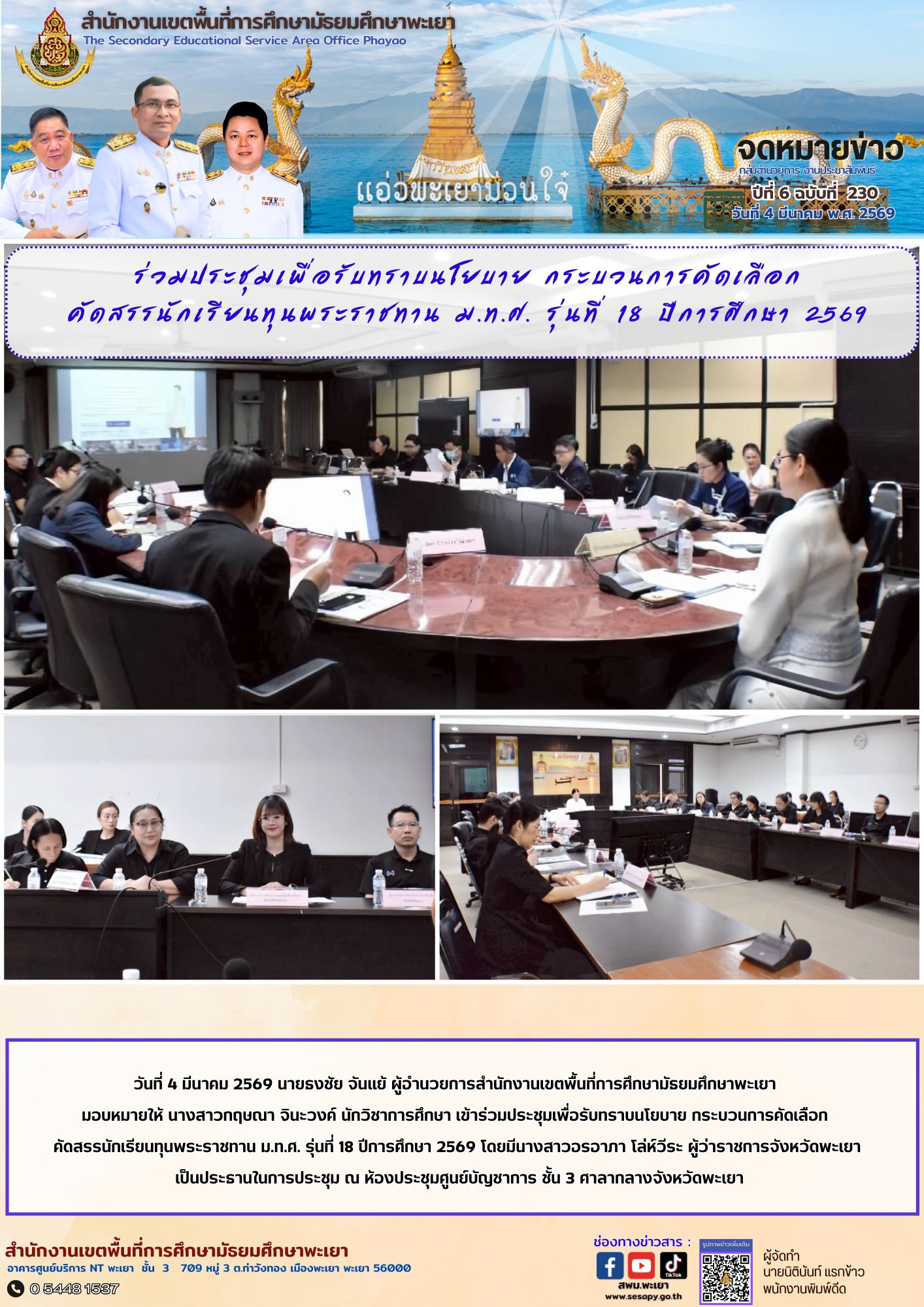 จดหมายข่าว สพม. อำนวยการ งานประชาสัมพันธ์ ปีที่ 6 ฉบับที่ 230 : 4 มีนาคม 2569 10 มีนาคม 202610 มีนาคม 2026