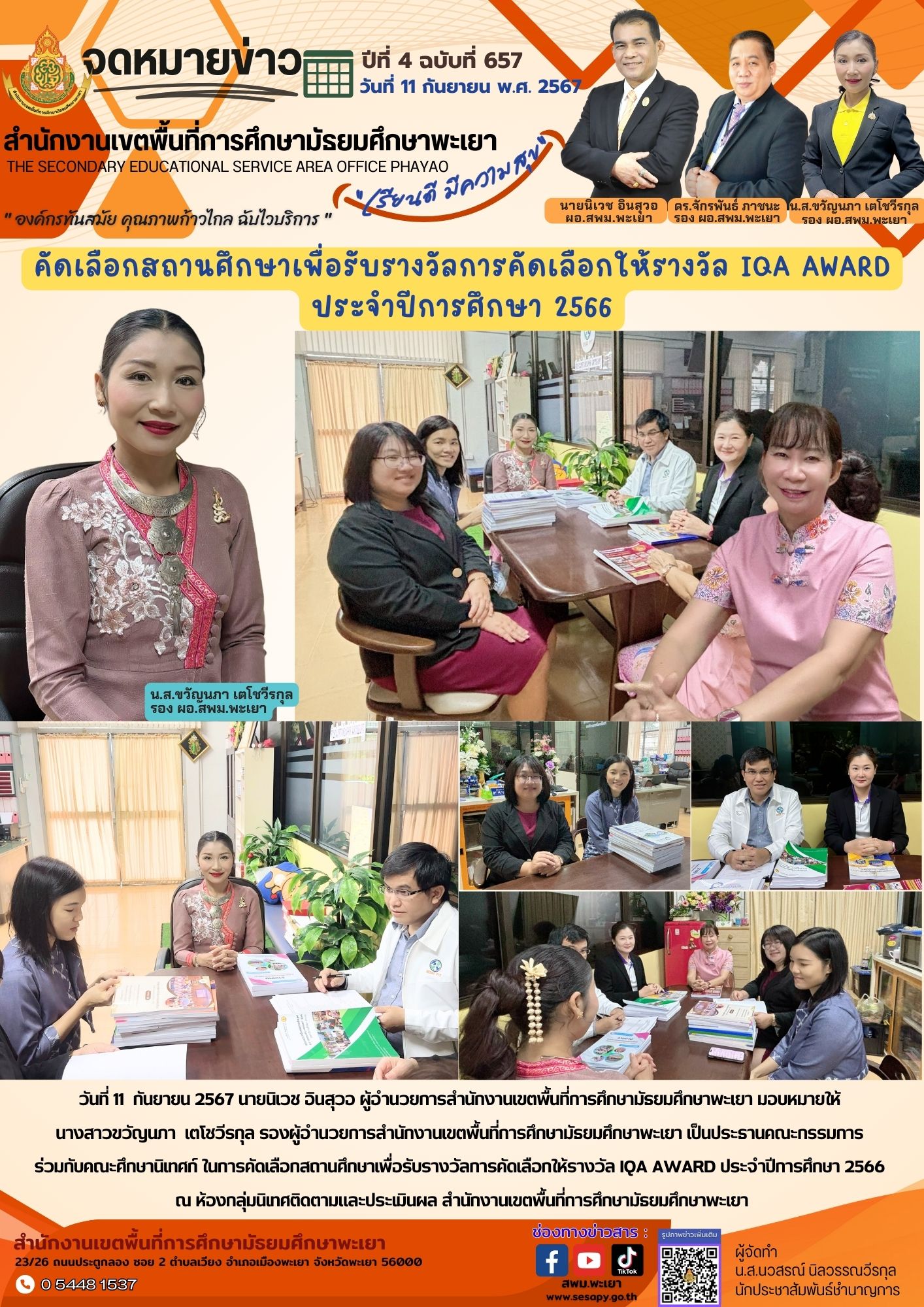 จดหมายข่าว สพม. กลุ่มอำนวยการ งานประชาสัมพันธ์ ปีที่ 4 ฉบับที่ 657:11 กันยายน 2567 12 กันยายน 202412 กันยายน 2024