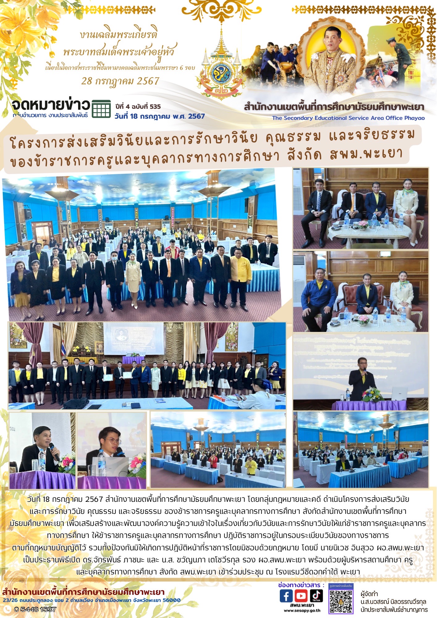 จดหมายข่าว สพม. กลุ่มอำนวยการ งานประชาสัมพันธ์ ปีที่ 4 ฉบับที่ 536 : 18 กรกฎาคม 2567 19 กรกฎาคม 202423 กรกฎาคม 2024