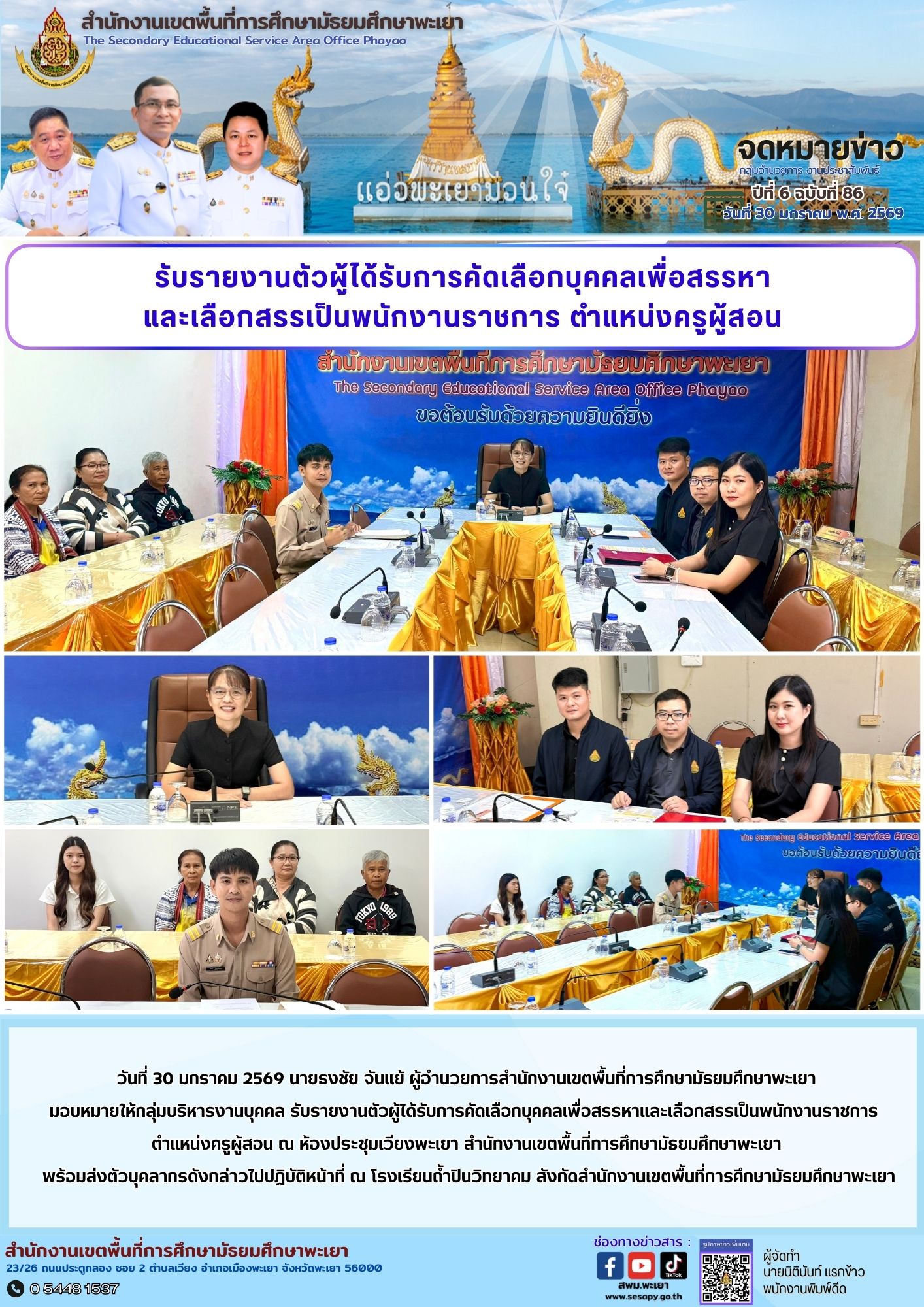 จดหมายข่าว สพม. กลุ่มอำนวยการ งานประชาสัมพันธ์ ปีที่ 6 ฉบับที่ 86 : 30 มกราคม 2569 2 กุมภาพันธ์ 20262 กุมภาพันธ์ 2026