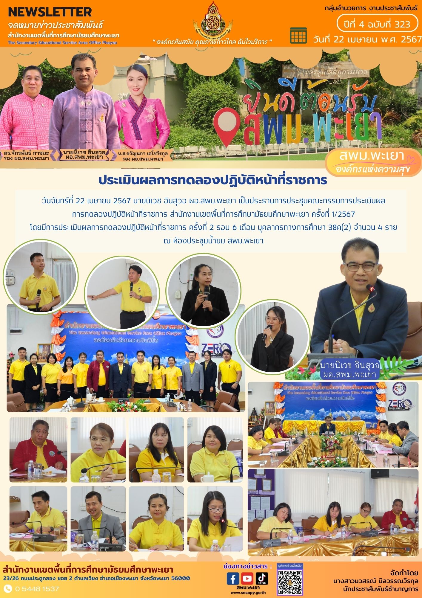 จดหมายข่าว สพม. กลุ่มอำนวยการ งานประชาสัมพันธ์ ปีที่ 4 ฉบับที่ 322 : 22 เมษายน 2567 22 เมษายน 202422 เมษายน 2024