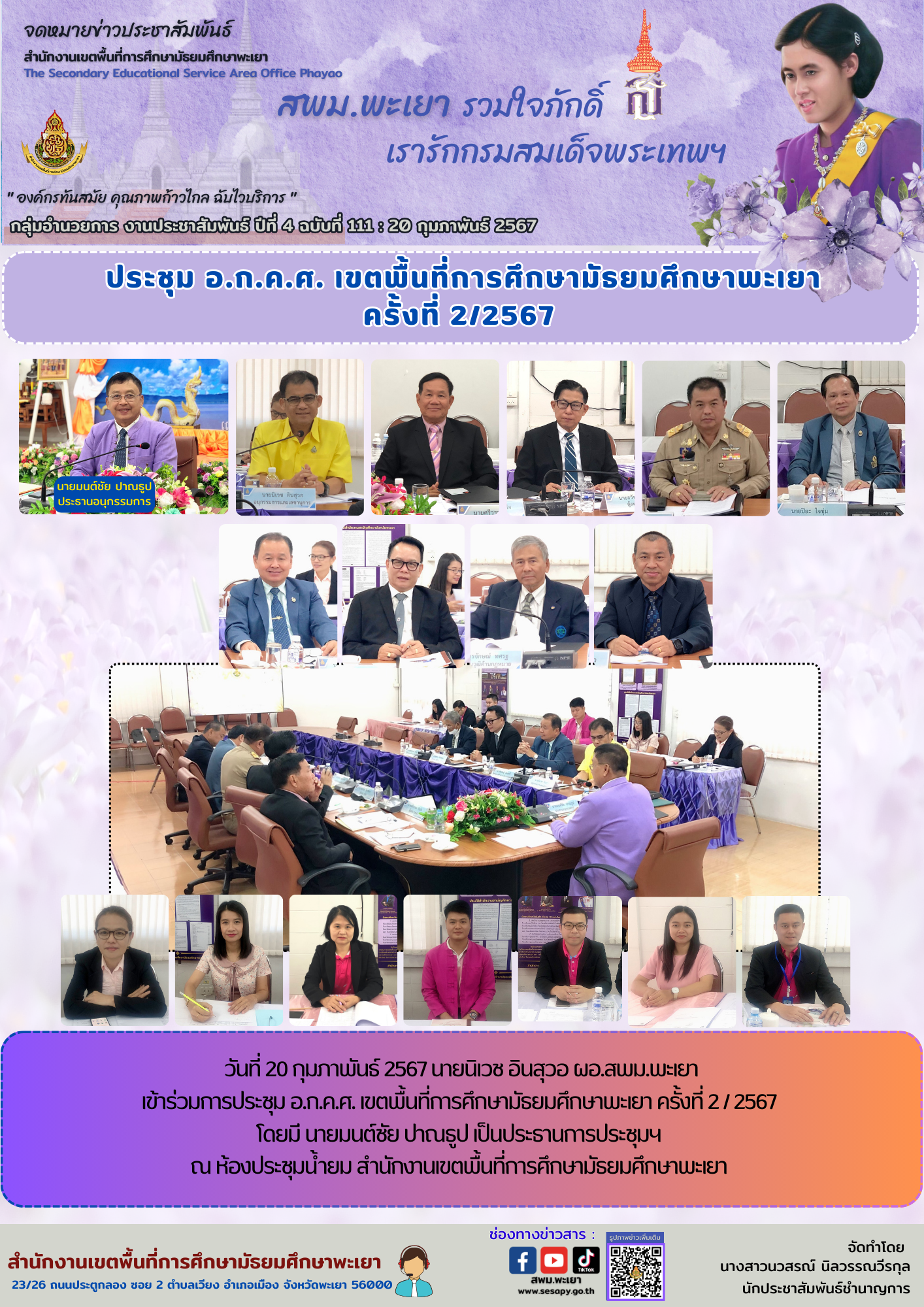 ข่าวกิจกรรม สพม.พะเยา คณะกรรมการ อ.ก.ต.ป.น ติดตามผลการจัดการศึกษาโรงเรียนพะเยาพิทยาคม 28 มีนาคม 20221 เมษายน 2022