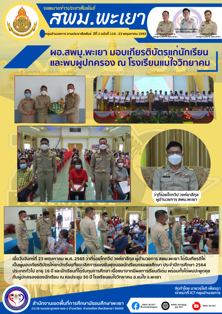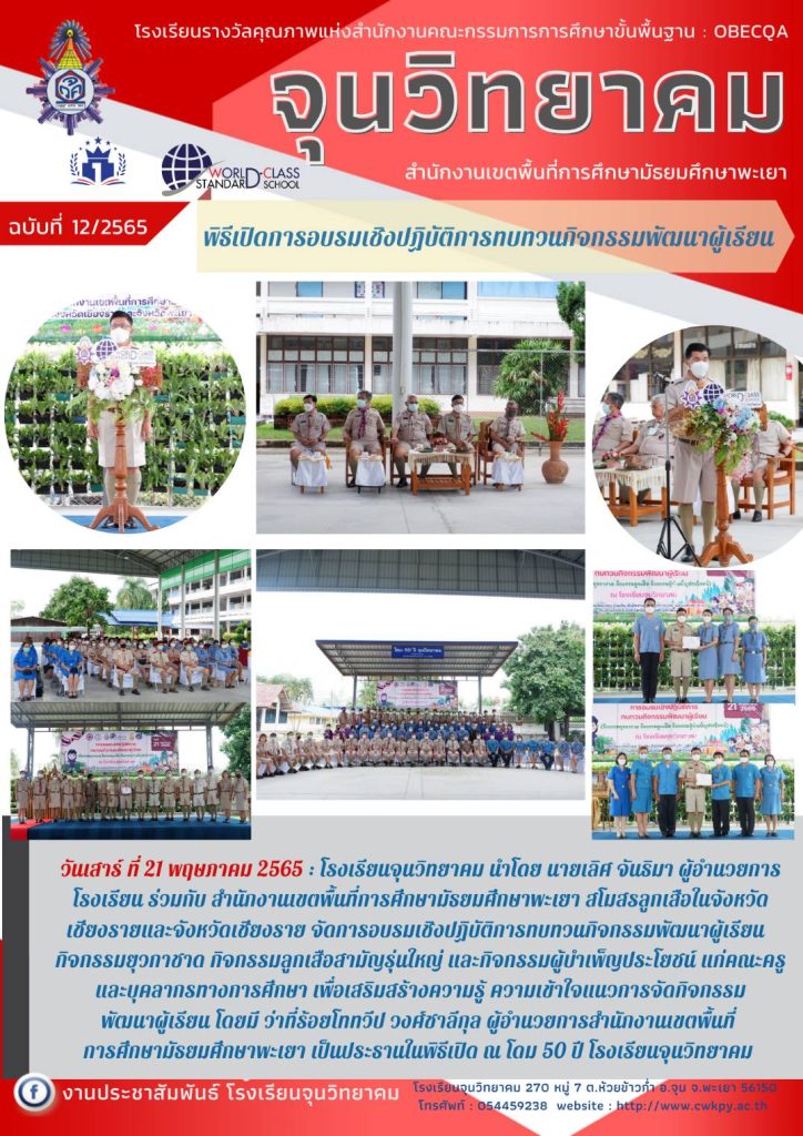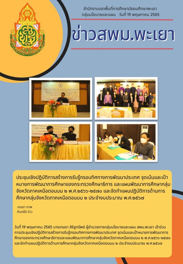จดหมายข่าว สพม. ผอ.สพม.พะเยา เป็นประธานพิธีเปิดการอบรมเชิงปฏิบัติการทบทวนกิจกรรมพัฒนาผู้เรียน 23 พฤษภาคม 202223 พฤษภาคม 2022