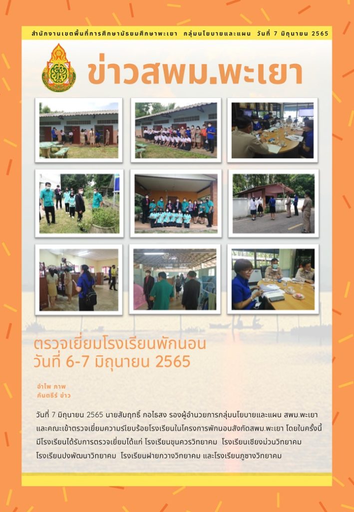 จดหมายข่าว สพม. ตรวจเยี่ยมโรงเรียนพักนอนโรงเรียนสังกัด สพม.พะเยา วันที่ 6-7 มิ.ย. 2565 7 มิถุนายน 202214 มิถุนายน 2022