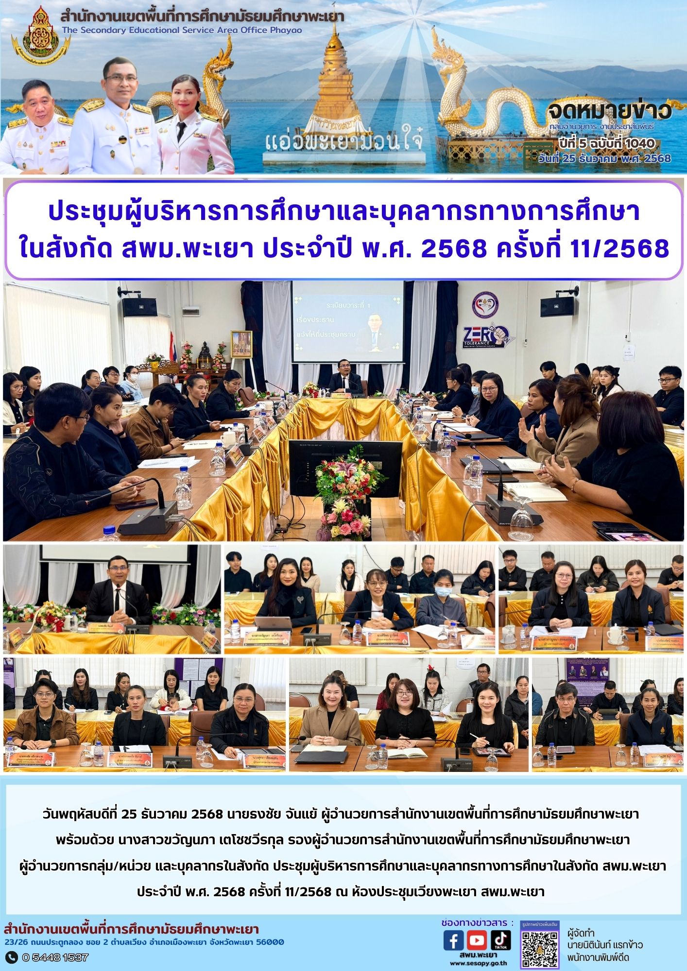 จดหมายข่าว สพม. กลุ่มอำนวยการ งานประชาสัมพันธ์ ปีที่ 5 ฉบับที่ 1040 : 25 ธันวาคม 2568 25 ธันวาคม 202525 ธันวาคม 2025