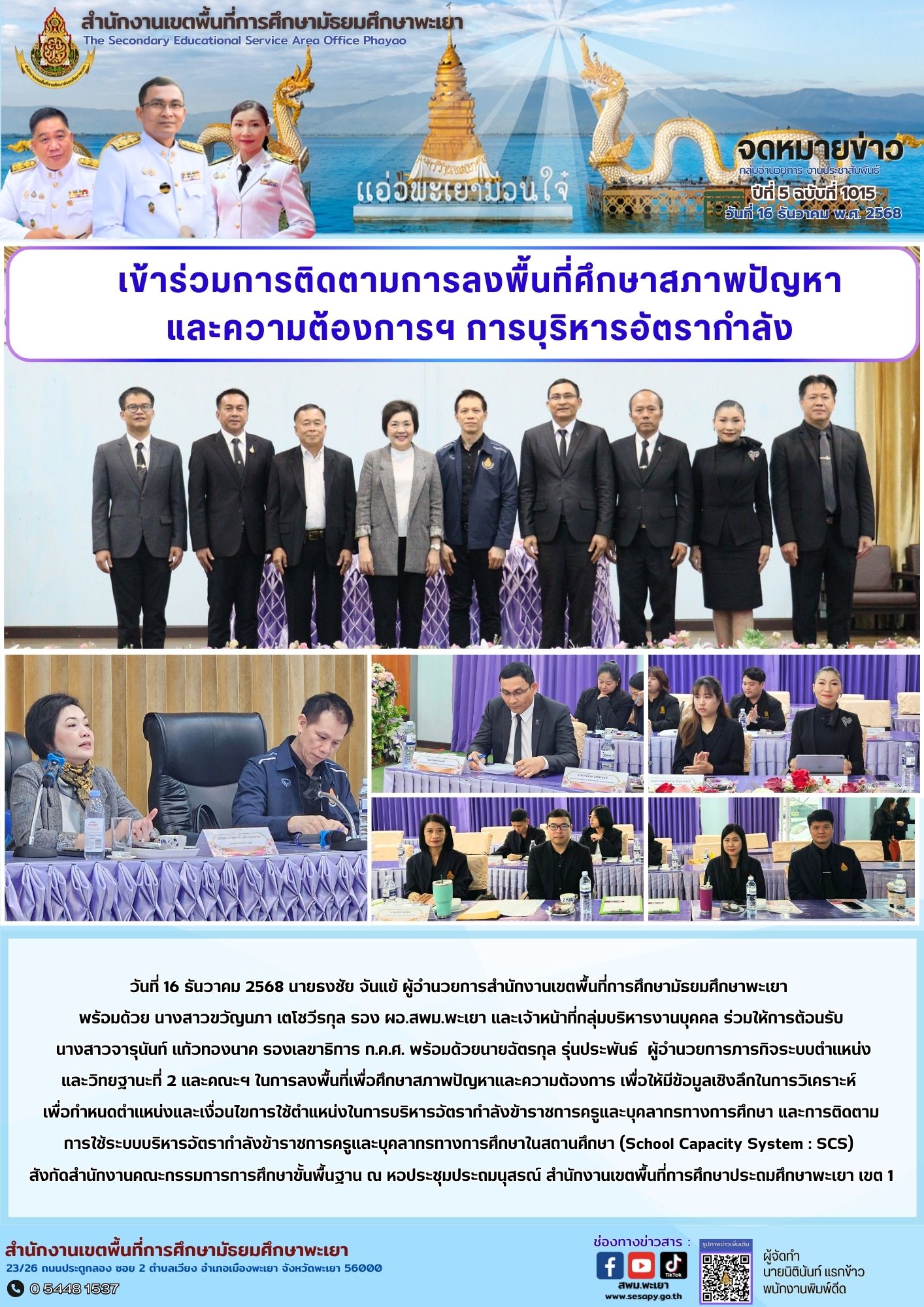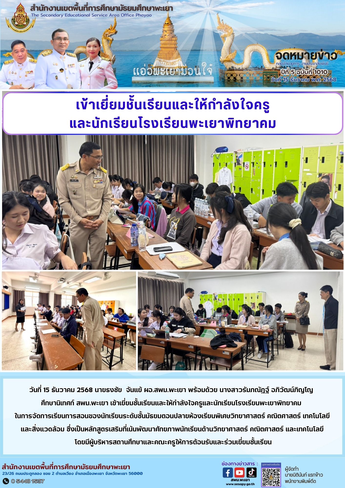 จดหมายข่าว สพม. กลุ่มอำนวยการ งานประชาสัมพันธ์ ปีที่ 5 ฉบับที่ 1010 : 15 ธันวาคม 2568 16 ธันวาคม 202516 ธันวาคม 2025
