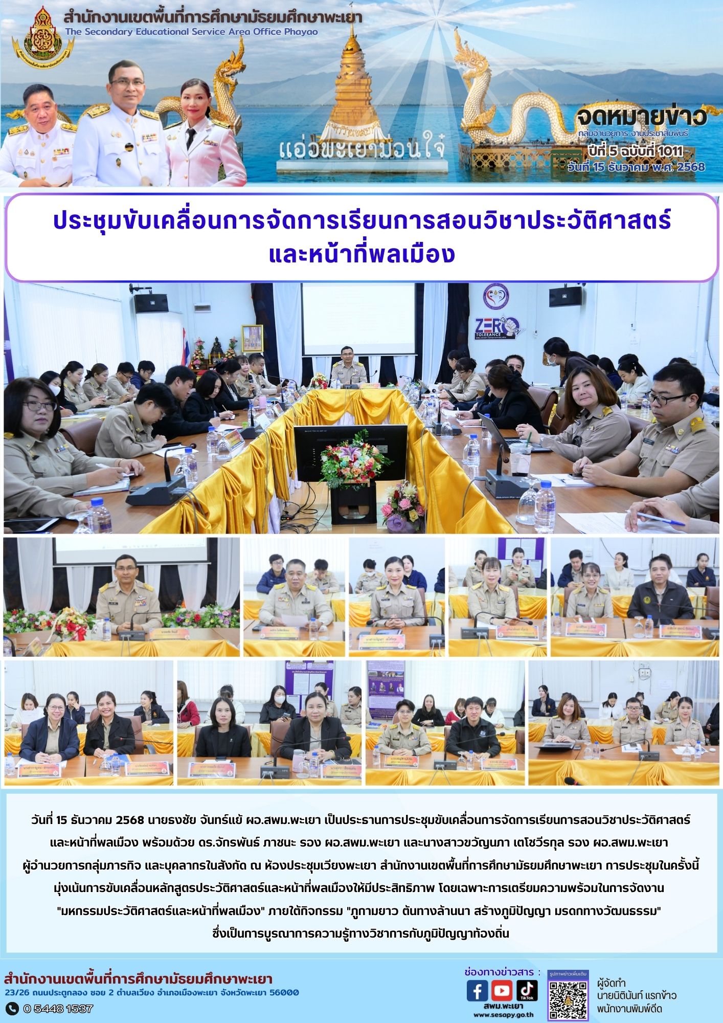 จดหมายข่าว สพม. กลุ่มอำนวยการ งานประชาสัมพันธ์ ปีที่ 5 ฉบับที่ 1011 : 15 ธันวาคม 2568 16 ธันวาคม 202516 ธันวาคม 2025