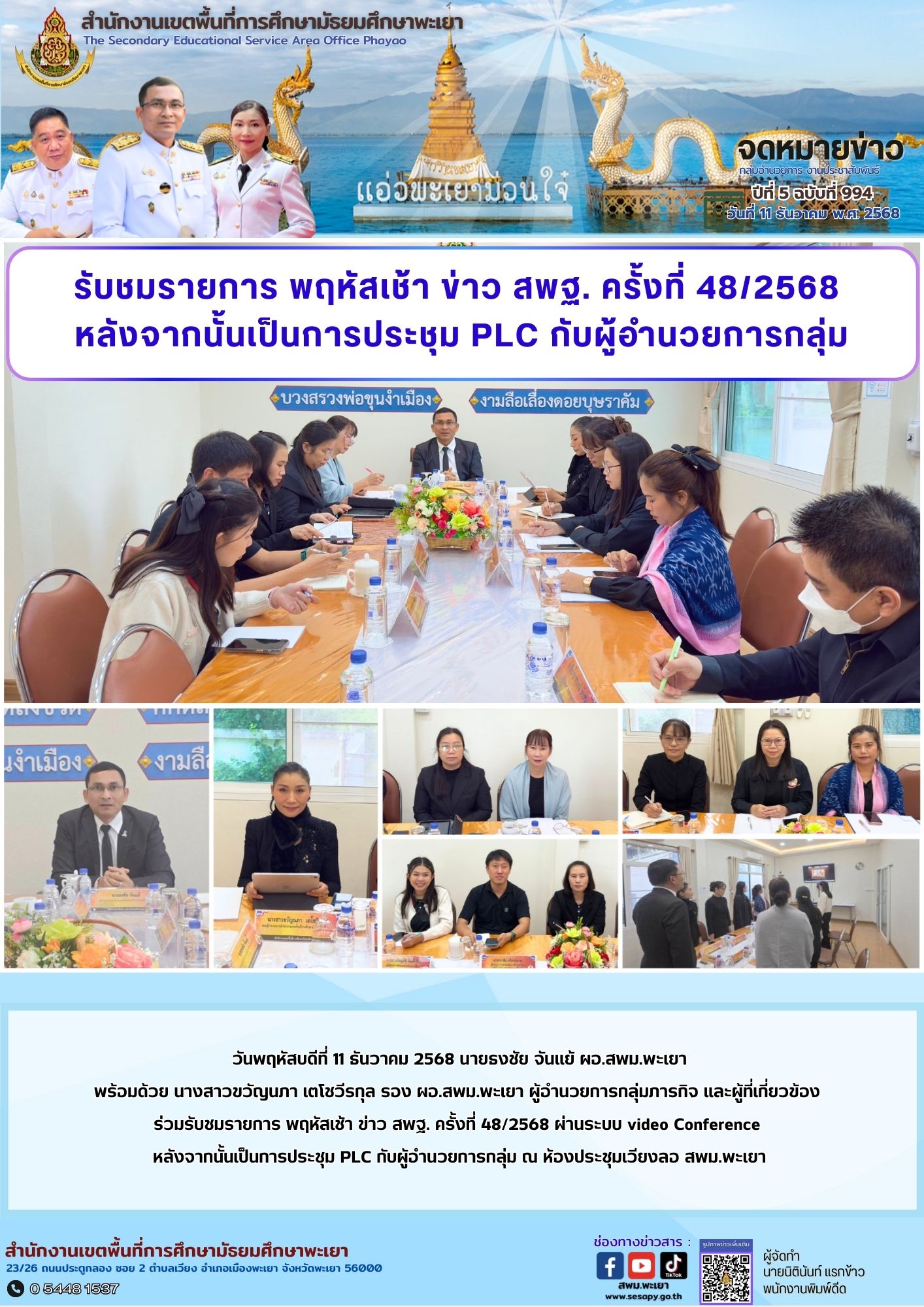 จดหมายข่าว สพม. กลุ่มอำนวยการ งานประชาสัมพันธ์ ปีที่ 5 ฉบับที่ 994 : 11 ธันวาคม 2568 16 ธันวาคม 202516 ธันวาคม 2025