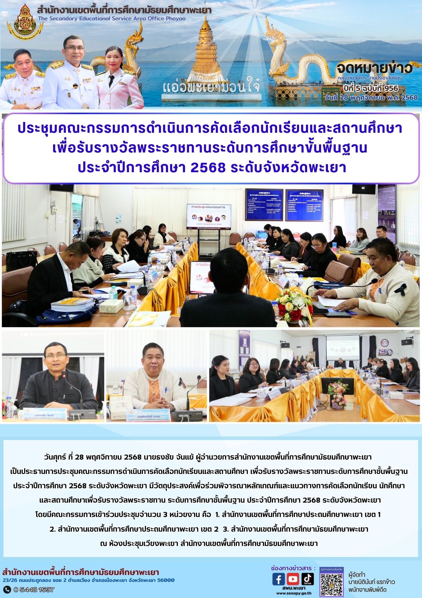 จดหมายข่าว สพม. กลุ่มอำนวยการ งานประชาสัมพันธ์ ปีที่ 5 ฉบับที่ 956 : 28 พฤศจิกายน 2568 2 ธันวาคม 20252 ธันวาคม 2025