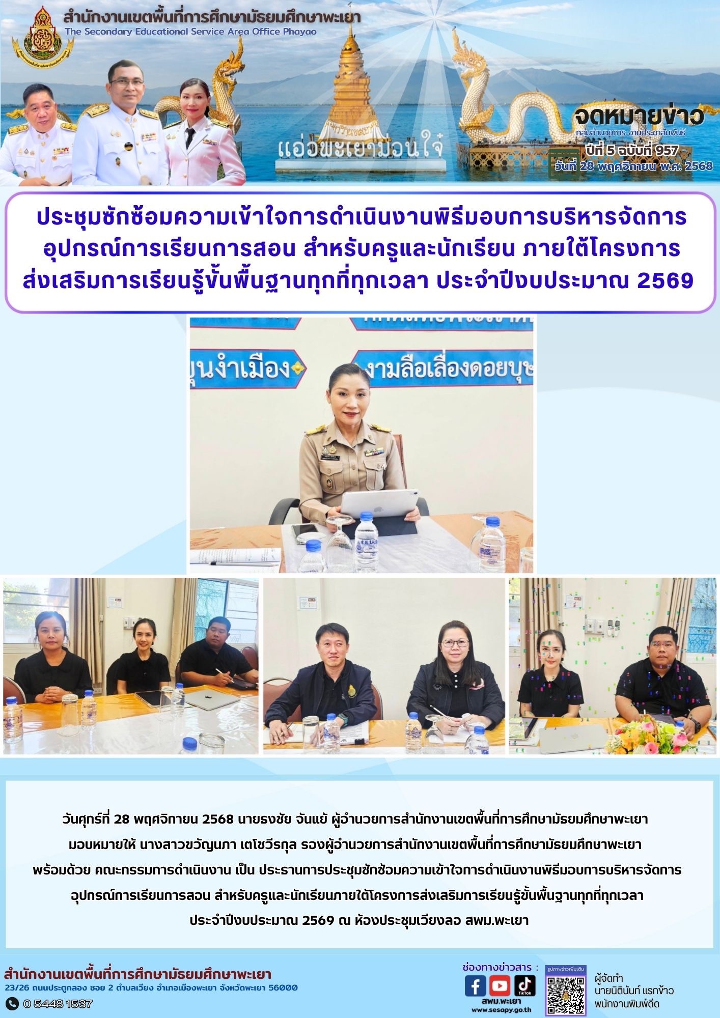 จดหมายข่าว สพม. กลุ่มอำนวยการ งานประชาสัมพันธ์ ปีที่ 5 ฉบับที่ 957 : 28 พฤศจิกายน 2568 2 ธันวาคม 20252 ธันวาคม 2025