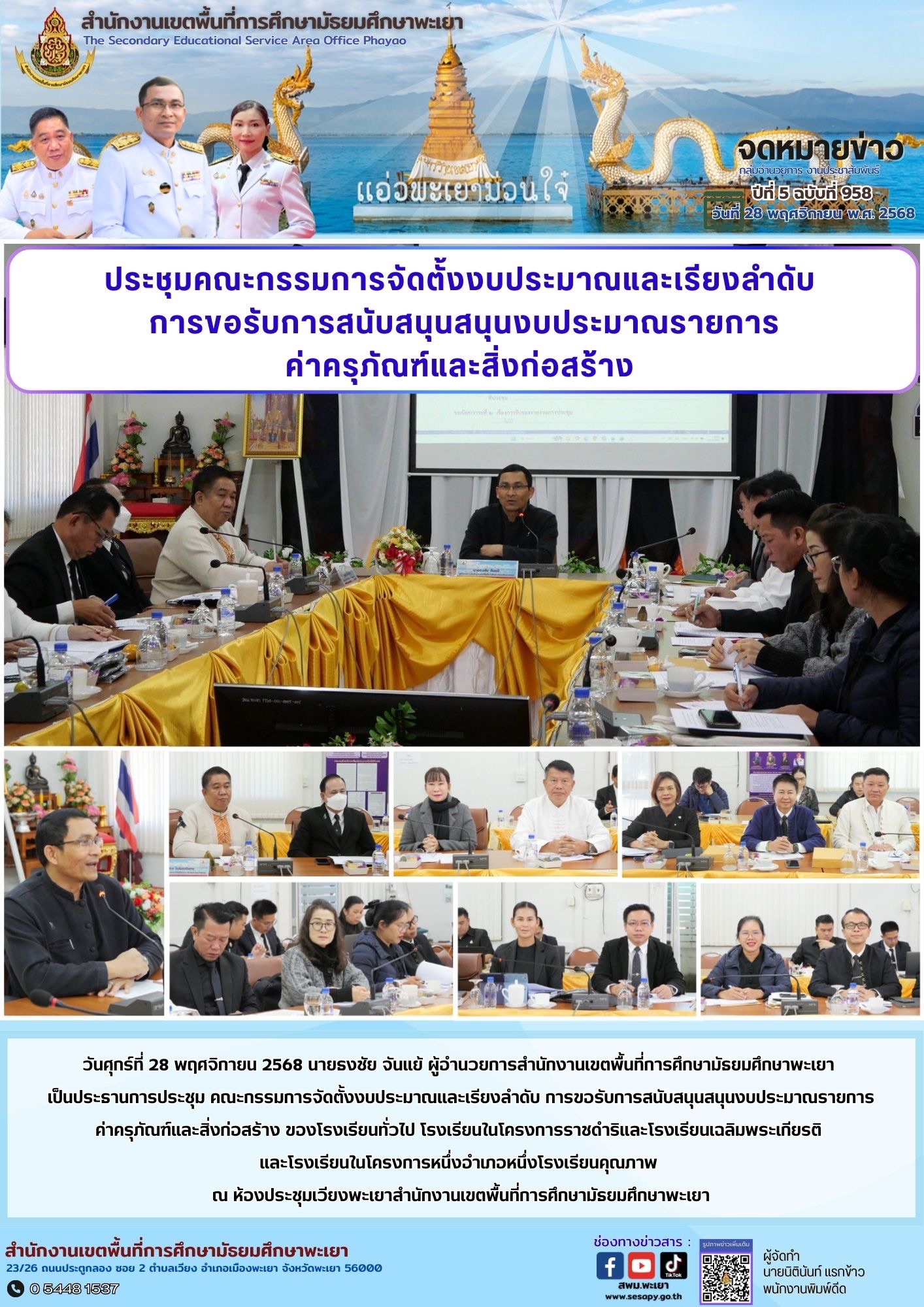 จดหมายข่าว สพม. กลุ่มอำนวยการ งานประชาสัมพันธ์ ปีที่ 5 ฉบับที่ 958 : 28 พฤศจิกายน 2568 2 ธันวาคม 20252 ธันวาคม 2025