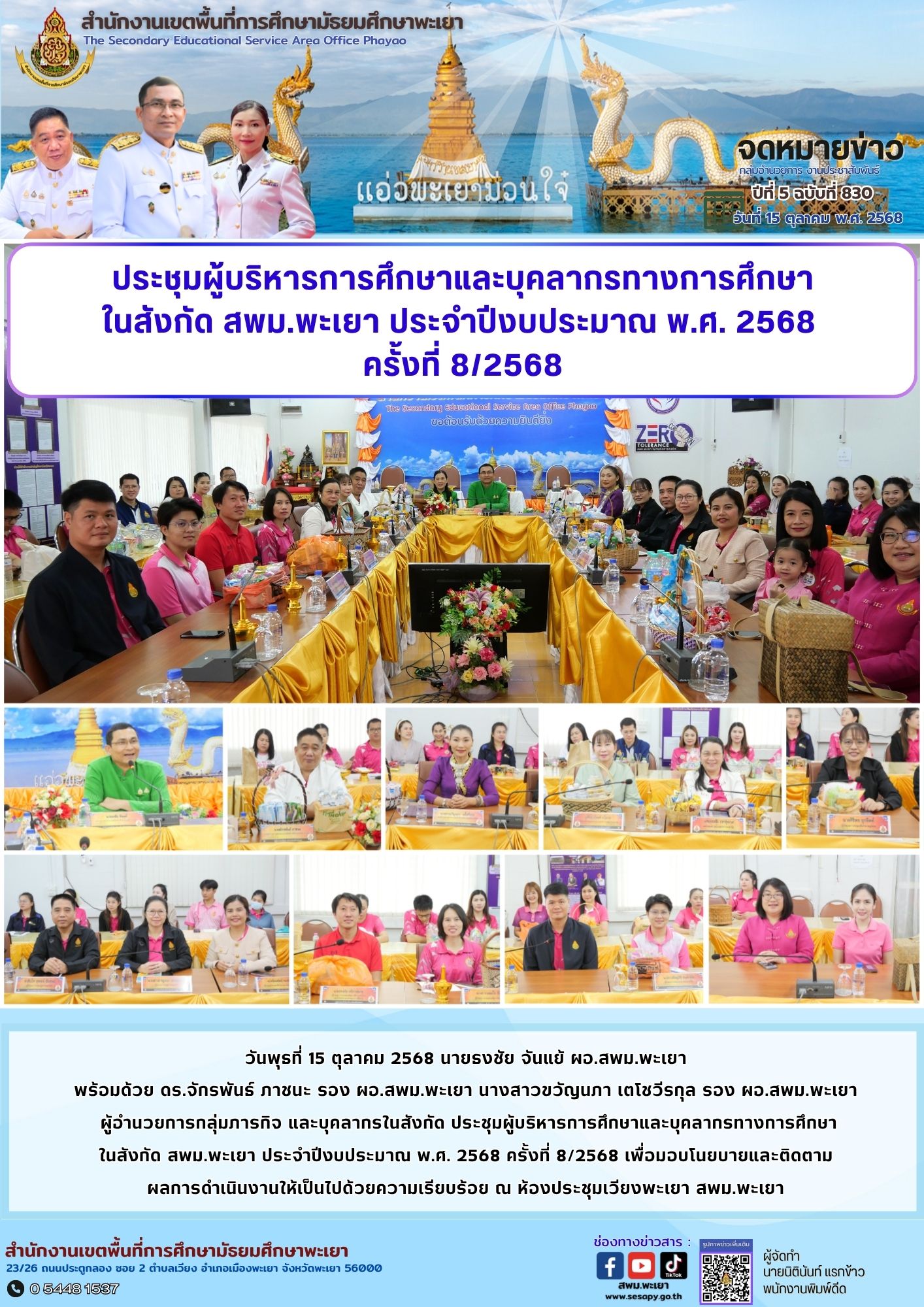 จดหมายข่าว สพม. กลุ่มอำนวยการ งานประชาสัมพันธ์ ปีที่ 5 ฉบับที่ 830 : 15 ตุลาคม 2568 15 ตุลาคม 202515 ตุลาคม 2025