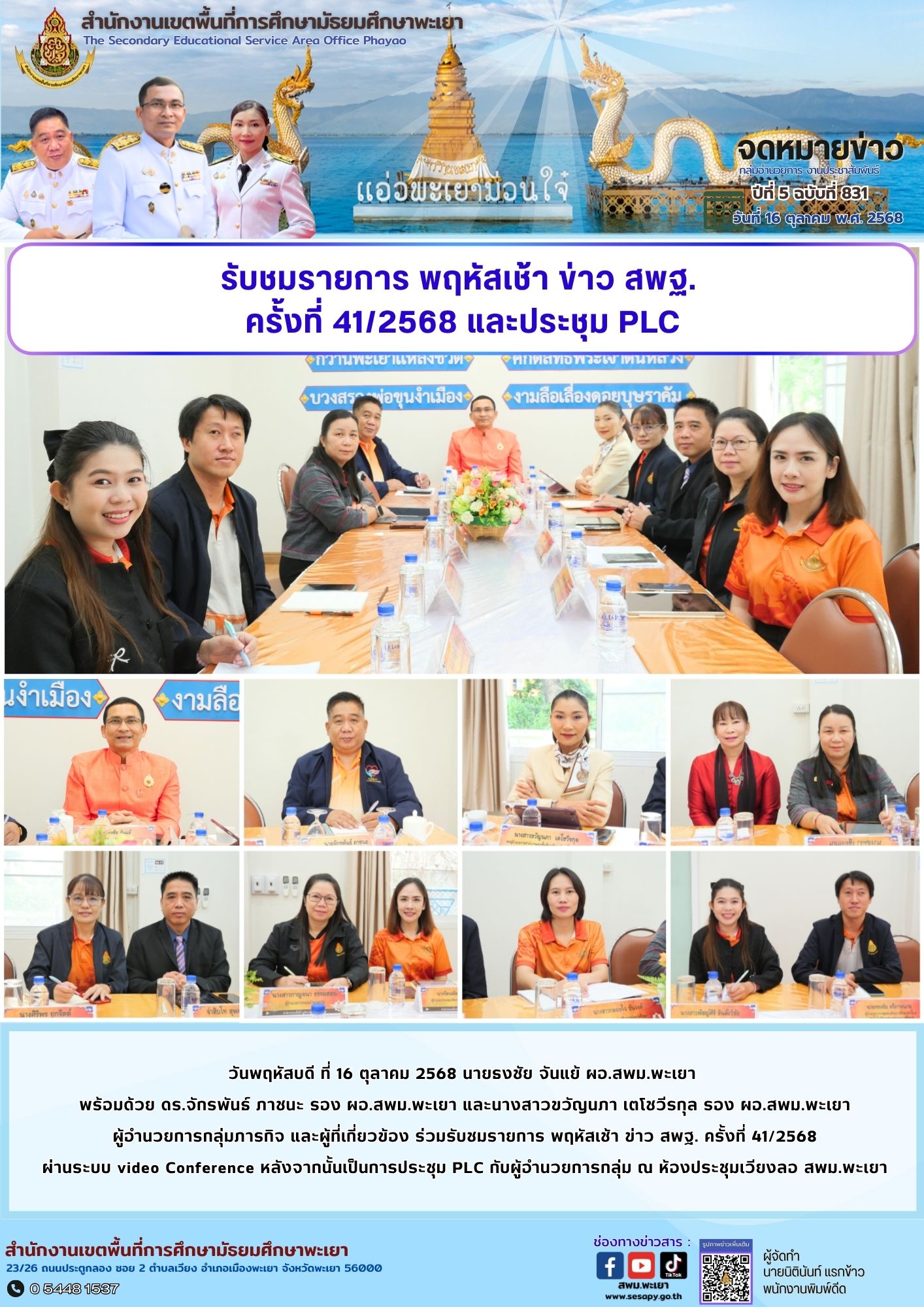 จดหมายข่าว สพม. กลุ่มอำนวยการ งานประชาสัมพันธ์ ปีที่ 5 ฉบับที่ 831 : 16 ตุลาคม 2568 16 ตุลาคม 202516 ตุลาคม 2025