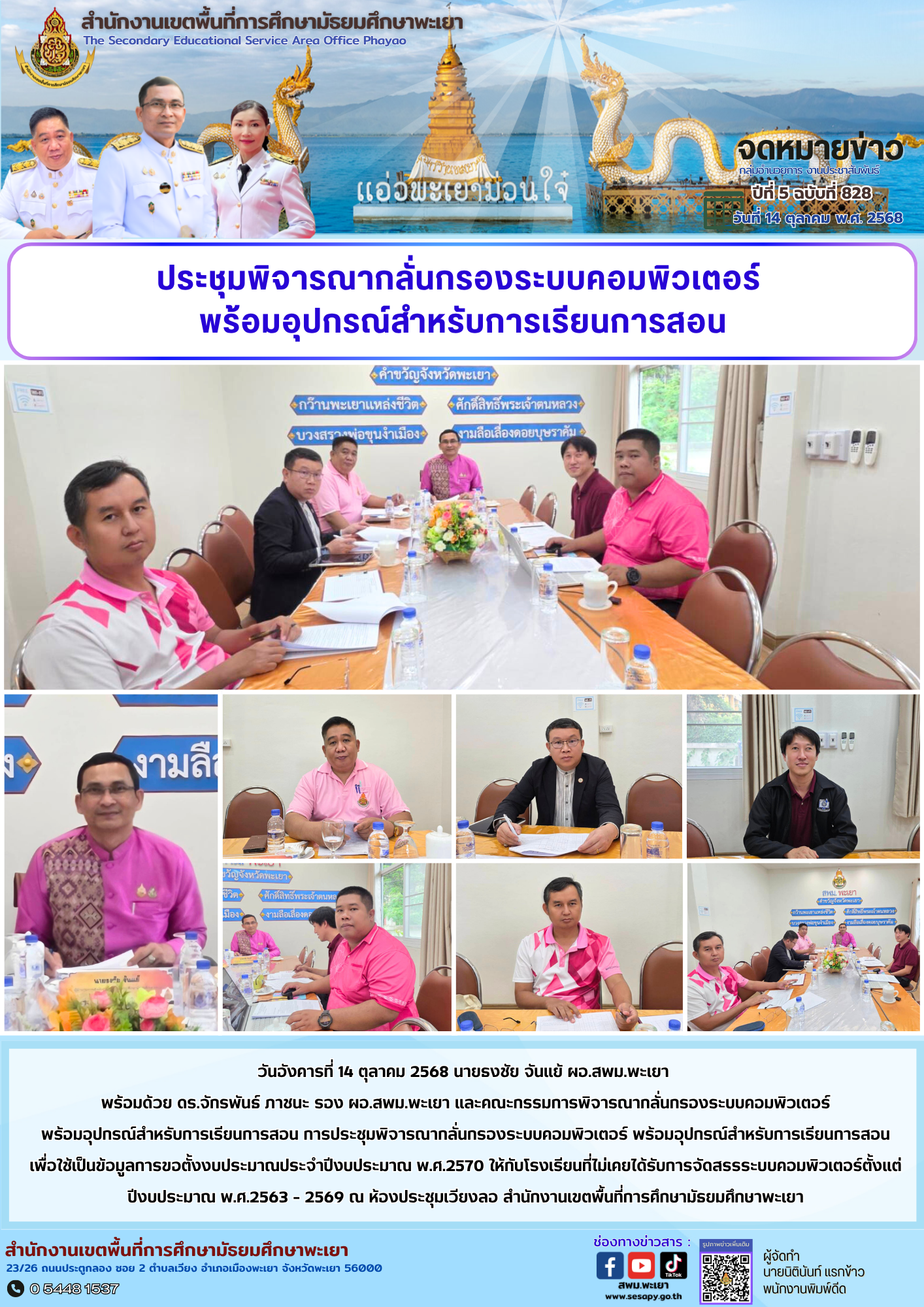 จดหมายข่าว สพม. กลุ่มอำนวยการ งานประชาสัมพันธ์ ปีที่ 5 ฉบับที่ 828 : 14 ตุลาคม 2568 14 ตุลาคม 202514 ตุลาคม 2025