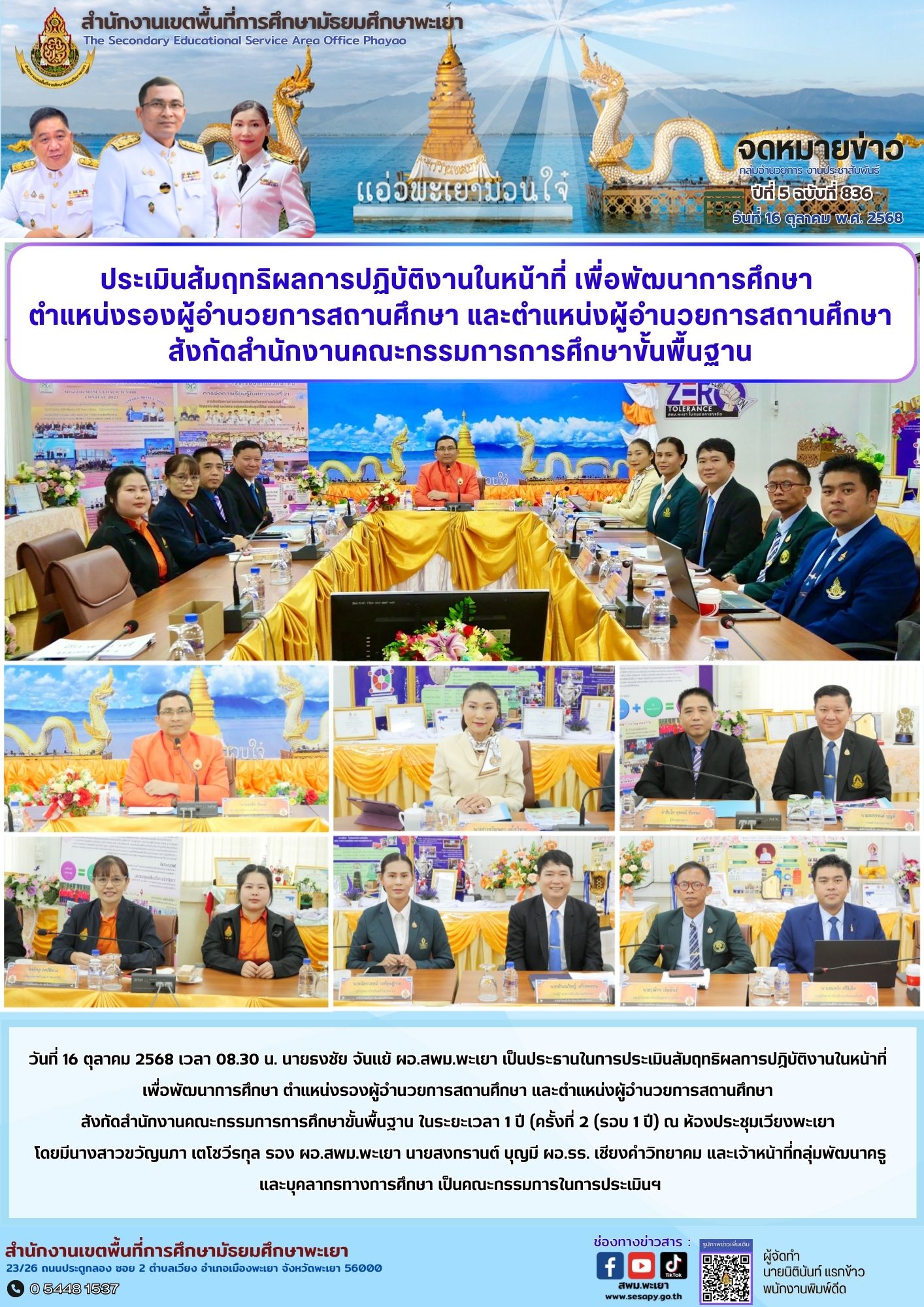 จดหมายข่าว สพม. กลุ่มอำนวยการ งานประชาสัมพันธ์ ปีที่ 5 ฉบับที่ 836 : 16 ตุลาคม 2568 17 ตุลาคม 202517 ตุลาคม 2025