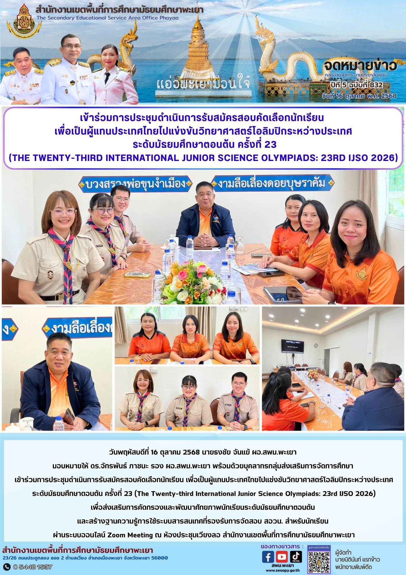 จดหมายข่าว สพม. กลุ่มอำนวยการ งานประชาสัมพันธ์ ปีที่ 5 ฉบับที่ 832 : 16 ตุลาคม 2568 16 ตุลาคม 202516 ตุลาคม 2025