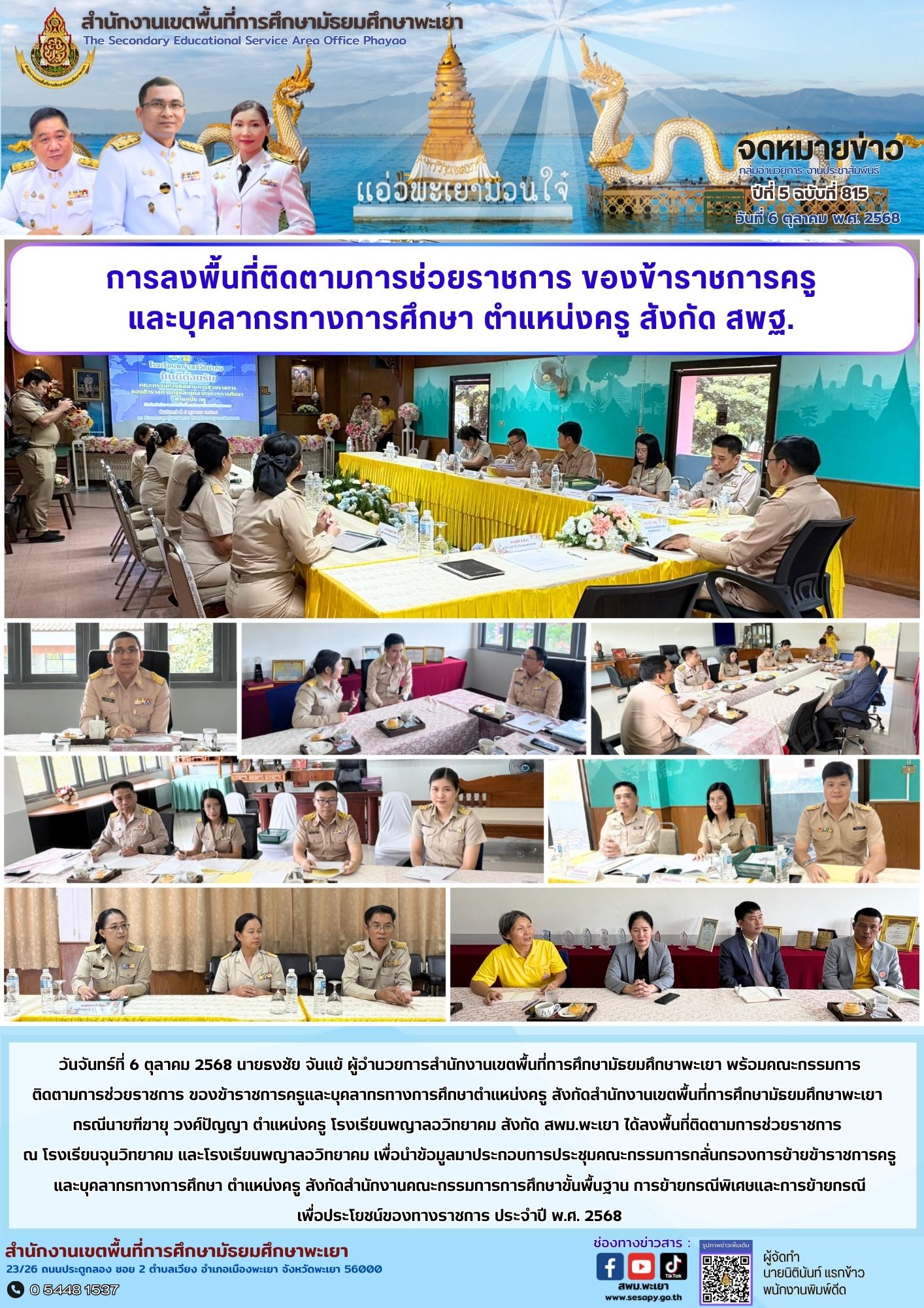 จดหมายข่าว สพม. กลุ่มอำนวยการ งานประชาสัมพันธ์ ปีที่ 5 ฉบับที่ 815 : 6 ตุลาคม 2568 7 ตุลาคม 20257 ตุลาคม 2025