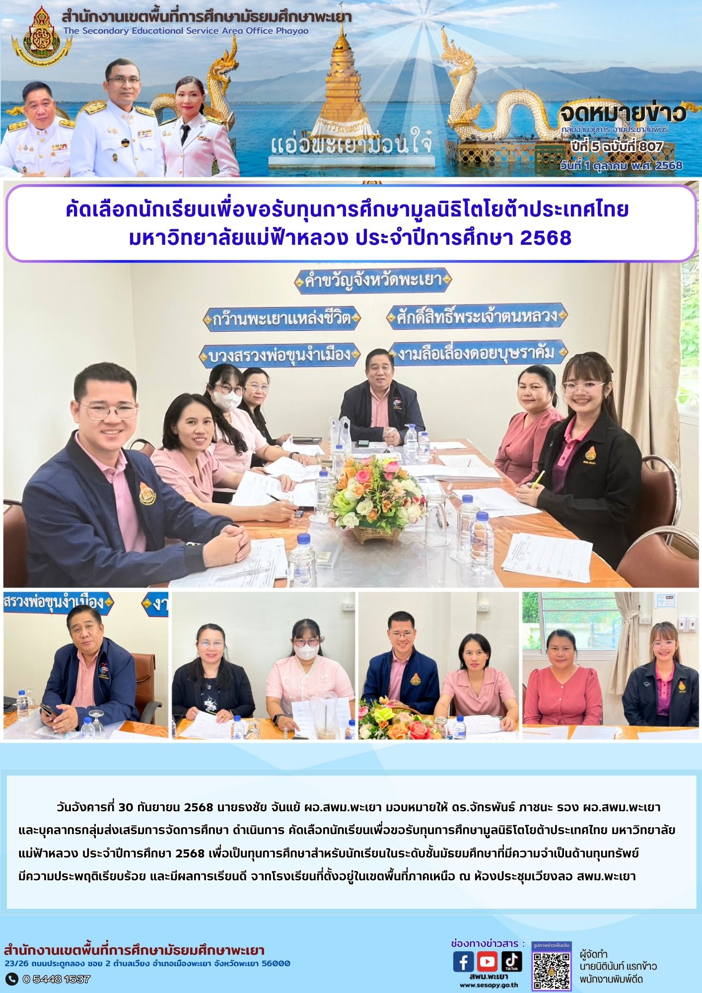 จดหมายข่าว สพม. กลุ่มอำนวยการ งานประชาสัมพันธ์ ปีที่ 5 ฉบับที่ 807 : 1 ตุลาคม 2568 1 ตุลาคม 20251 ตุลาคม 2025