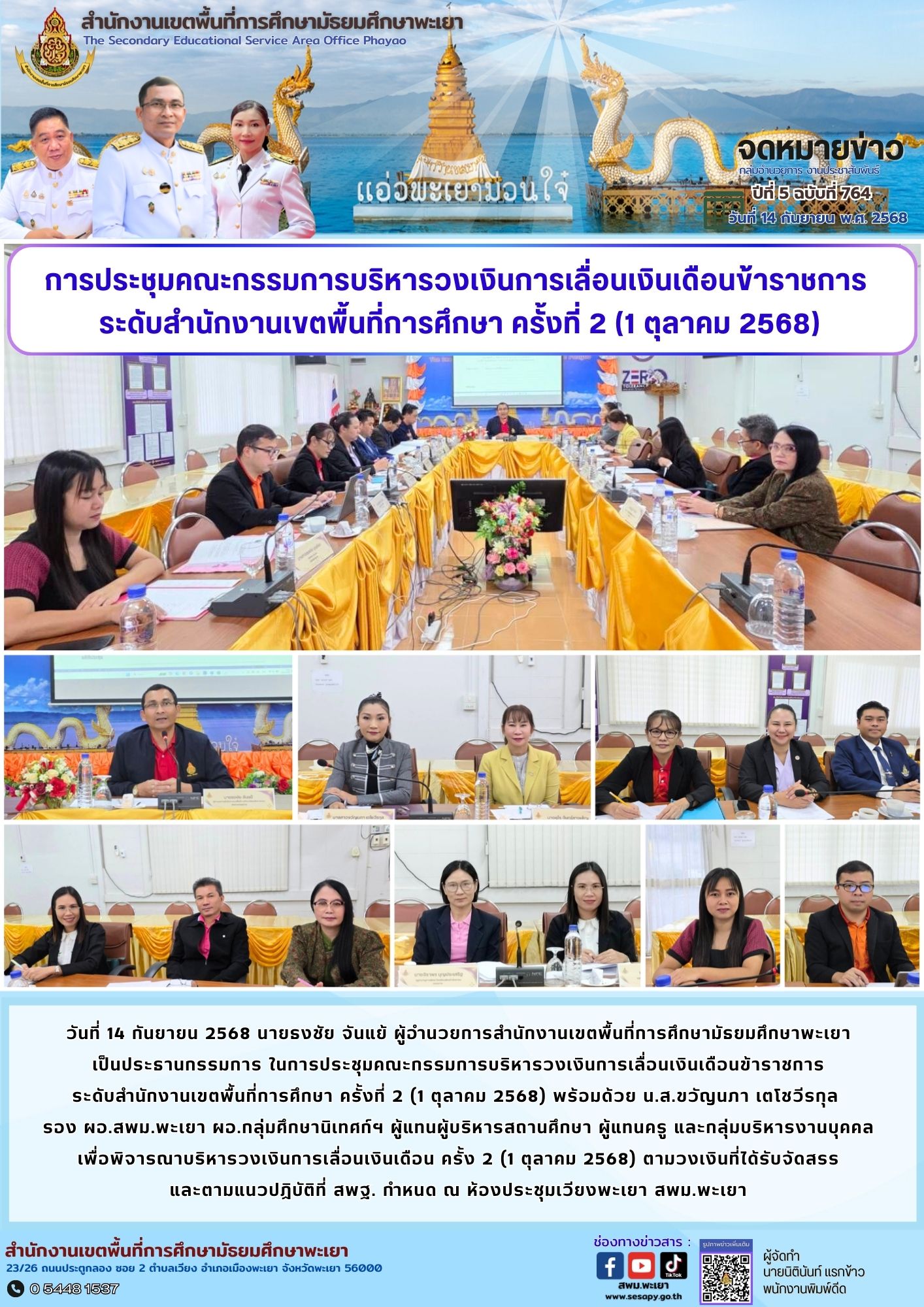 จดหมายข่าว สพม. กลุ่มอำนวยการ งานประชาสัมพันธ์ ปีที่ 5 ฉบับที่ 764 : 14 กันยายน 2568 15 กันยายน 202515 กันยายน 2025